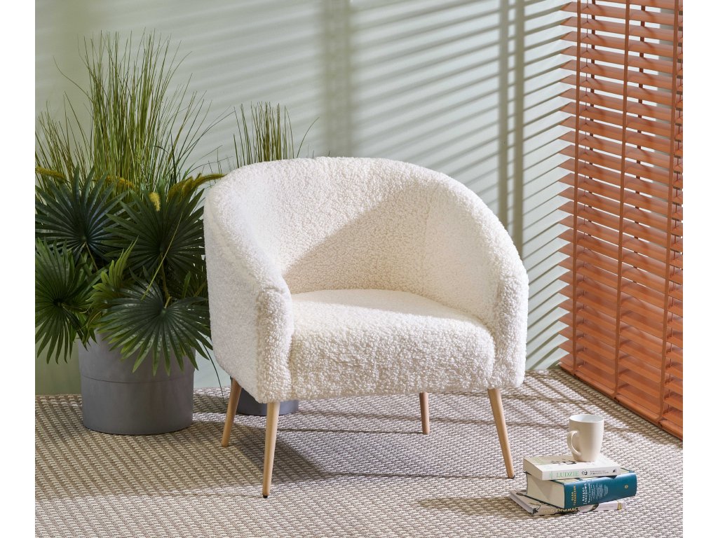 Křeslo BRAYDEN krémové/přírodní – Stylový komfort ve skandinávském duchu