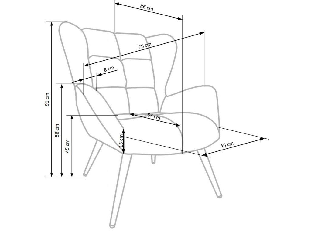 Měkký sametový povrch se sametovým leskem dodává křeslu prémiový vzhled, zatímco prošívání sedáku a opěradla podtrhuje jeho moderní charakter. Díky vysoké zádové opěrce a područkám je sezení přirozené a pohodlné i při delším užívání. Ocelová konstrukce zajišťuje stabilitu a dlouhou životnost.