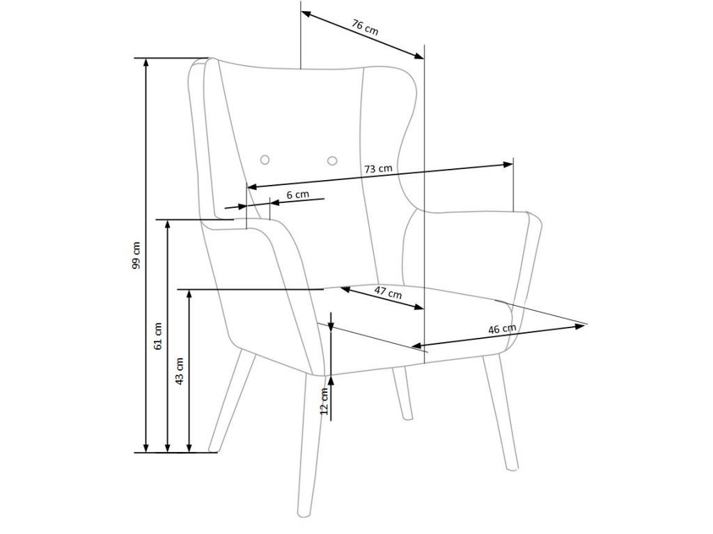 Rozměry křesla jsou 73 cm na šířku, 76 cm do hloubky a 99 cm na výšku, s výškou sedu 43 cm, což jej činí praktickým a zároveň dostatečně prostorným pro pohodlné sezení.