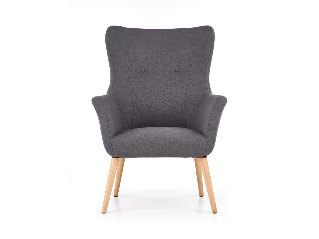 Křeslo LIRAN disponuje tvarovanou zádovou opěrkou a mírně zakřivenými područkami, které zajišťují maximální komfort při odpočinku. Čalounění z kvalitní tmavě šedé látky je doplněno pevnými nohami z masivního kaučukového dřeva, které zaručují stabilitu a dlouhou životnost.