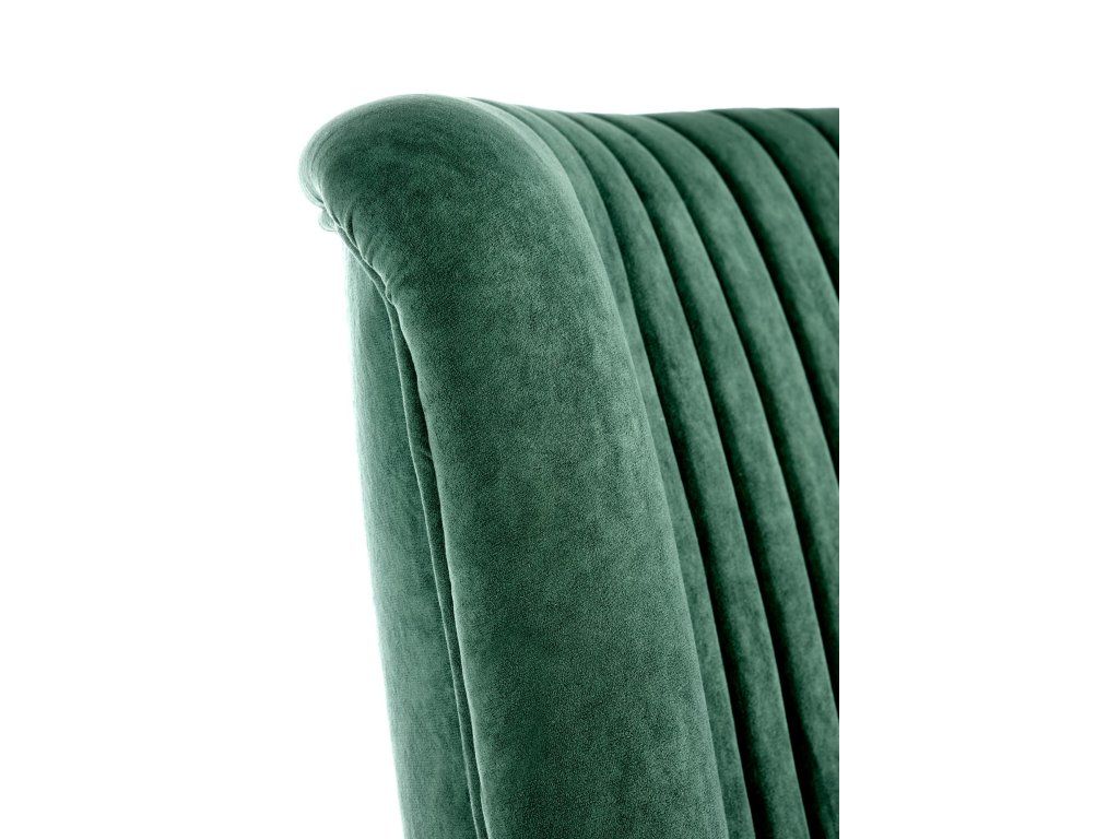 Čalouněné křeslo SAMUEL v elegantní tmavě zelené barvě nabízí dokonalou kombinaci pohodlí a stylu. Je potaženo jemnou sametovou látkou, která je příjemná na dotek a zároveň dodává interiéru luxusní a útulný vzhled. Prošívání na opěradle i přední části sedáku podtrhuje jeho moderní a elegantní design.