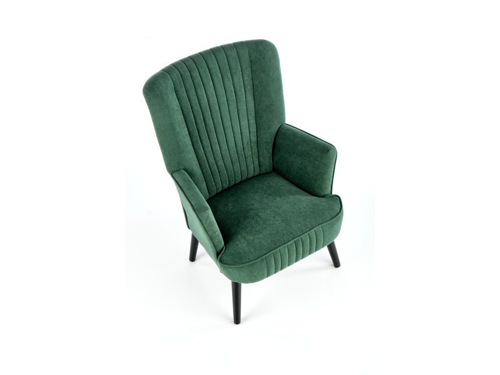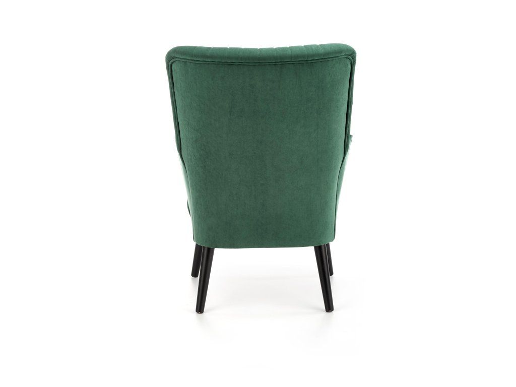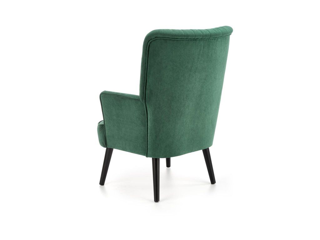 Čalouněné křeslo SAMUEL tmavě zelené – designové sametové křeslo pro váš domov