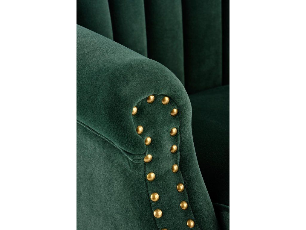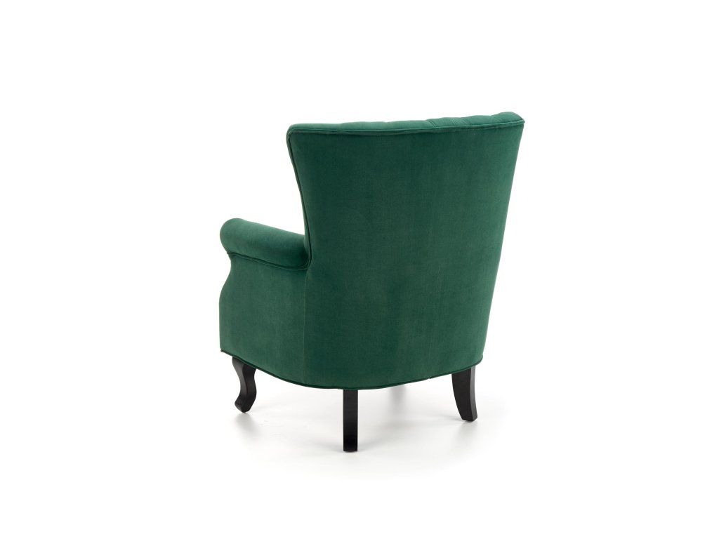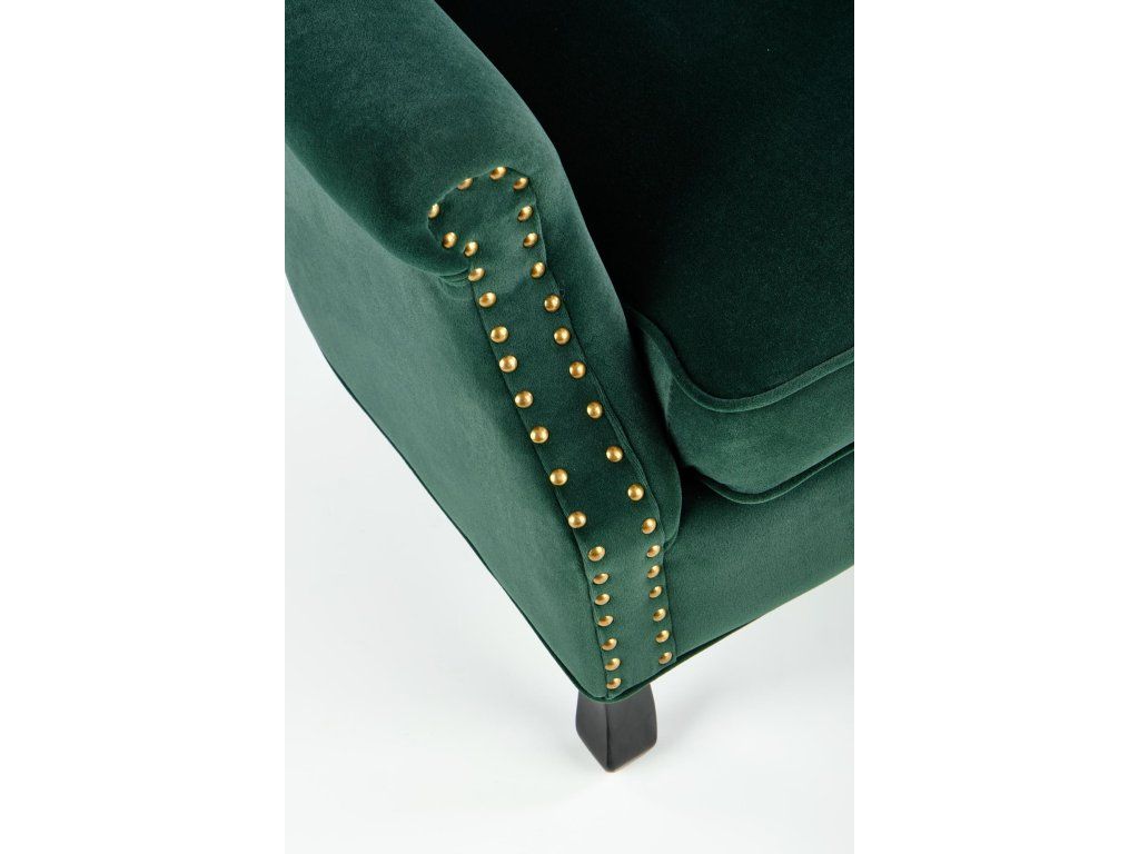 Dodejte svému domovu nádech luxusu a pohodlí s čalouněným křeslem WAYNE v tmavě zelené barvě.