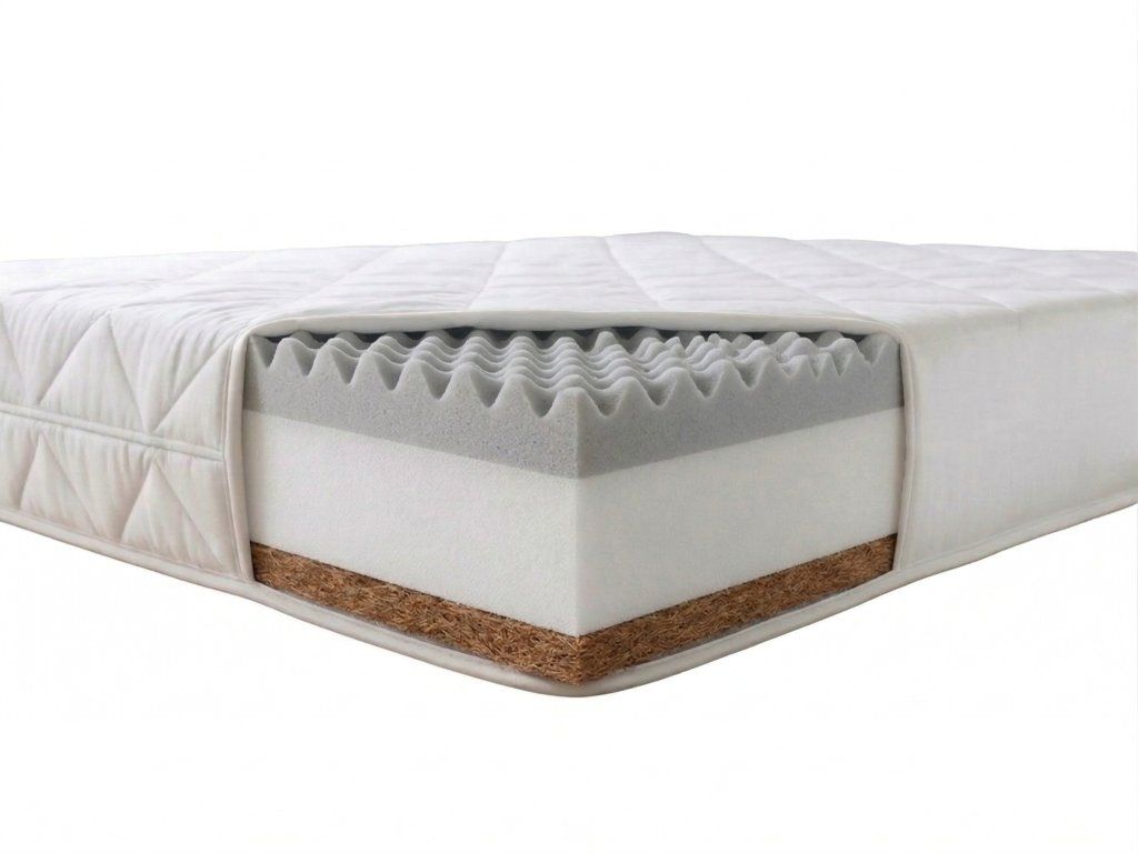Kokosová vrstva – Je tvořena kokosovými vlákny, která jsou spojena směsí přírodního a organického kaučuku. Tato vlákna jsou elastická, dutá, nepíchají ani nepráší. Výhodou kokosové vrstvy je výborný odvod vlhkosti a potu, přirozená odolnost vůči bakteriím a plísním. Díky svým tepelně izolačním vlastnostem a schopnosti umožnit proudění vzduchu přispívá k celkovému komfortu při spánku. Kokosová rohož, která tvoří přibližně 1 cm výšky matrace, dodává vyšší tuhost.