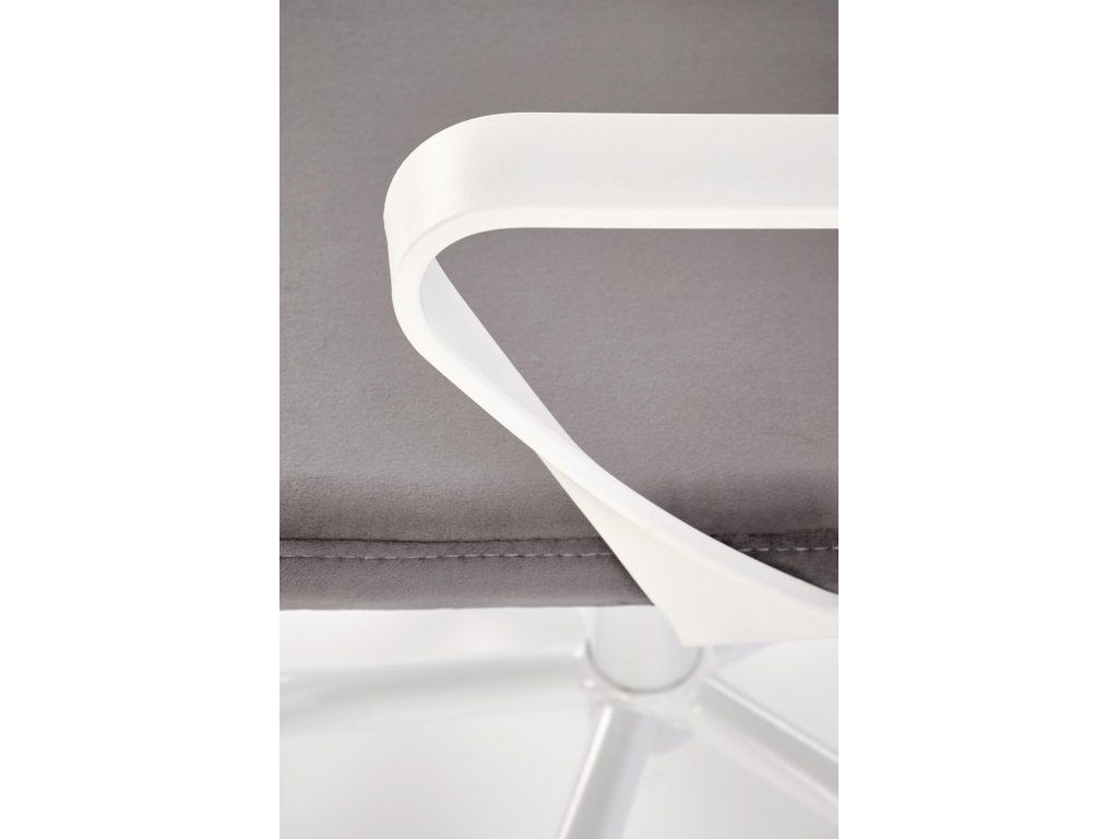 Kombinace světle šedé látky s bílým kovovým podstavcem dodává židli lehkost a styl, který snadno zapadne do jakéhokoliv interiéru. -