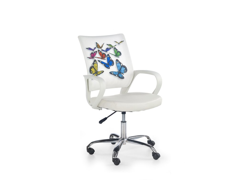 Hledáte pohodlnou a stylovou židli do dětského nebo studentského pokoje? Dětská otočná židle JEYDEN BUTTERFLY je ideální volbou. Zaujme veselým motivem motýlů na opěradle a nabízí ergonomický design spolu s kvalitním zpracováním. Měkký sedák z ekologické kůže a prodyšný látkový opěradlo zajistí pohodlné sezení i při delším studiu.