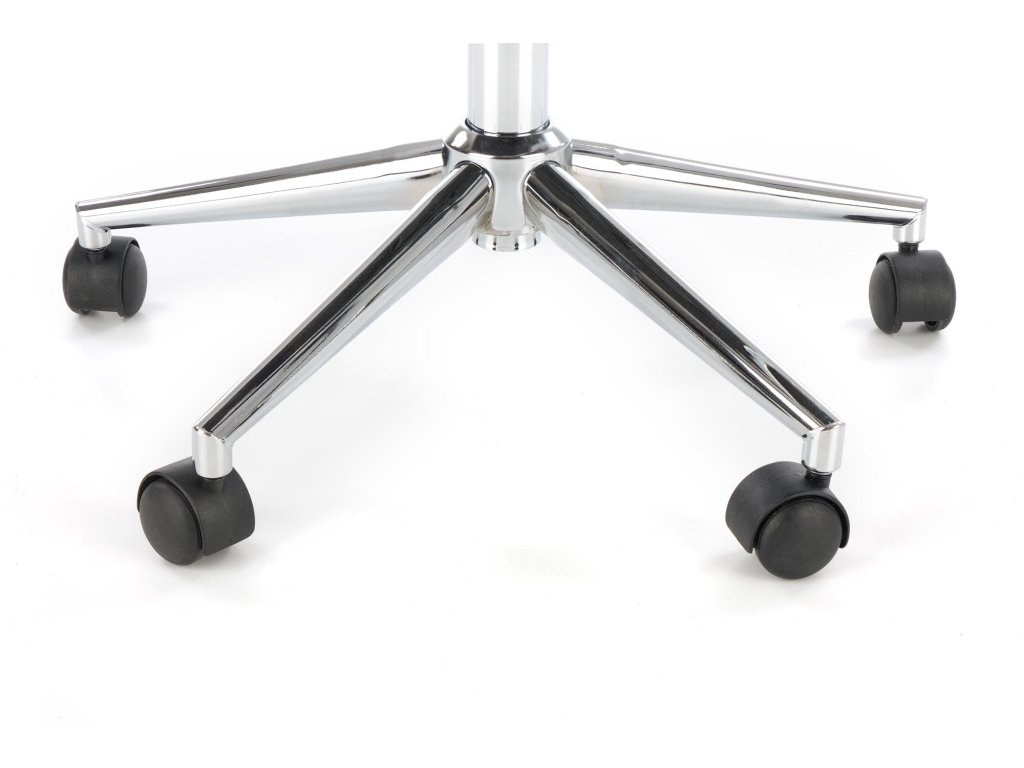 Ocelová pětiramenná základna s chromovou povrchovou úpravou zaručuje stabilitu a dlouhou životnost. Kolečka jsou vhodná na měkké povrchy, jako je koberec nebo lino.