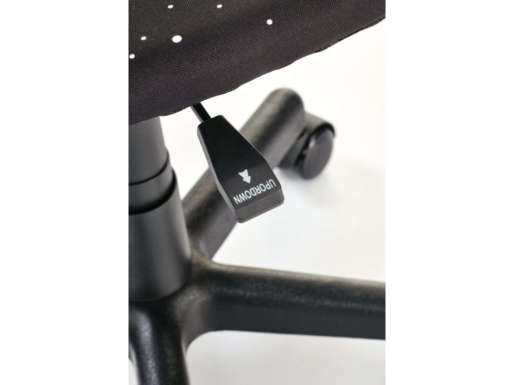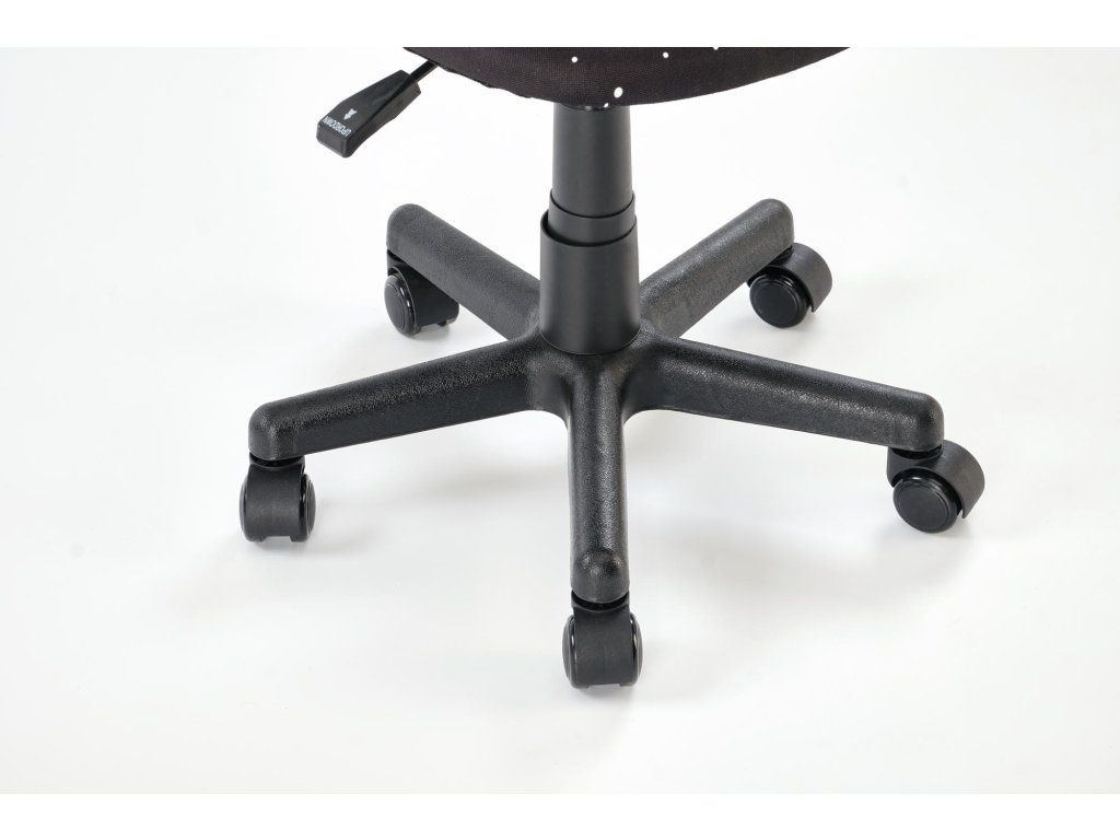 Čalounění z kvalitní černé textilie je odolné, snadno se čistí a zároveň působí moderně. Otočný mechanismus umožňuje volný pohyb, což podporuje aktivní sezení. Stabilní konstrukce s nosností až 80 kg zajišťuje bezpečné každodenní používání.