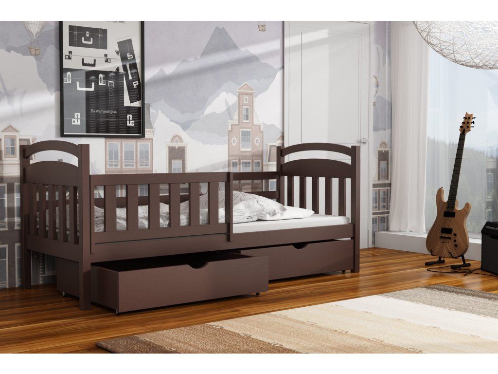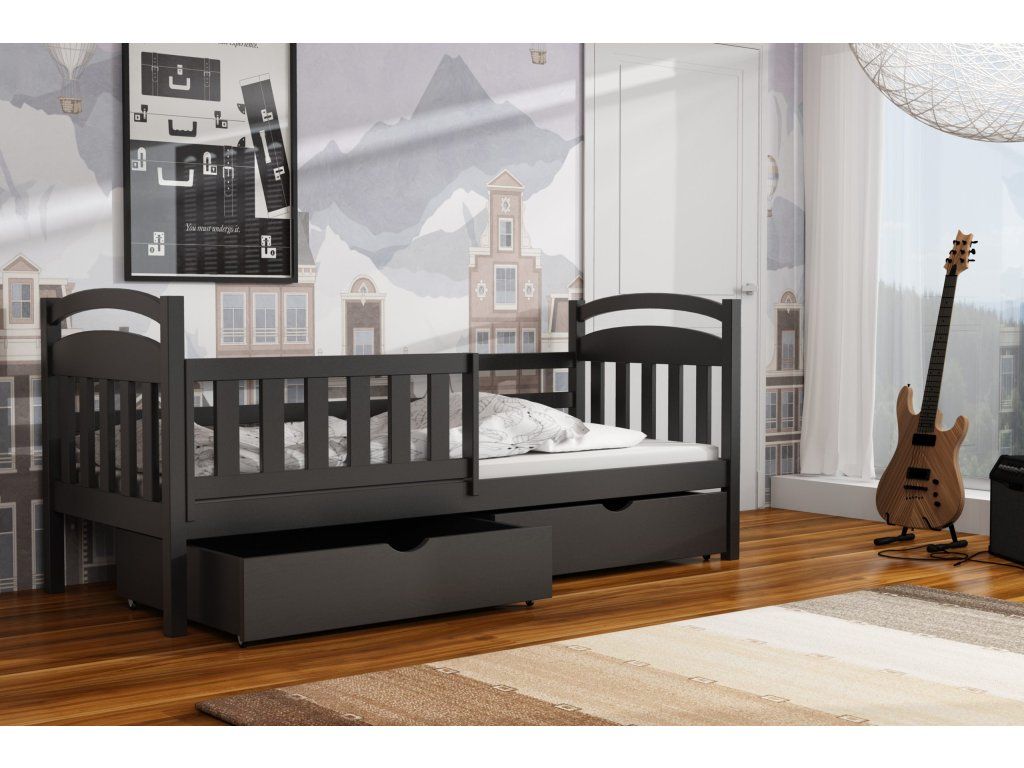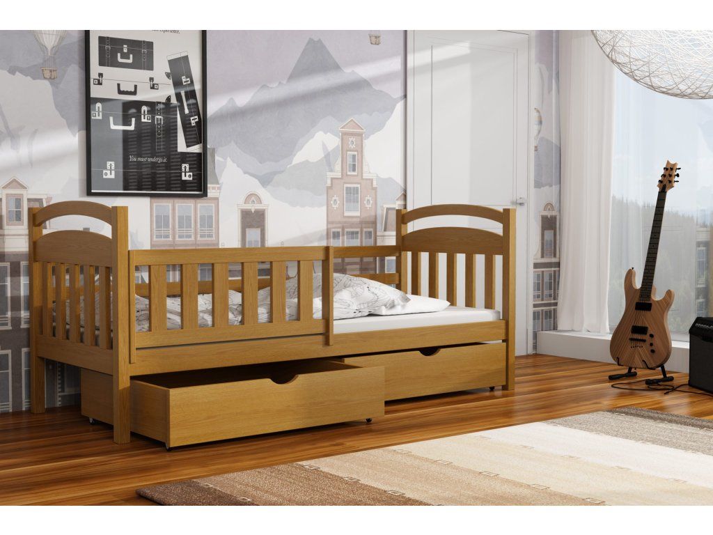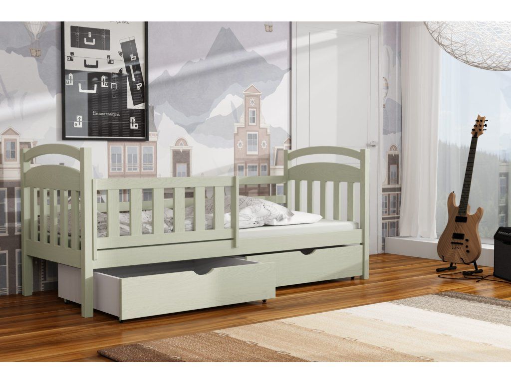 Dětská postel vyrobena z masivního borovicového dřeva zaručuje dlouhou životnost a stabilitu. Díky modernímu a nadčasovému designu se hodí do jakéhokoli dětského pokoje.