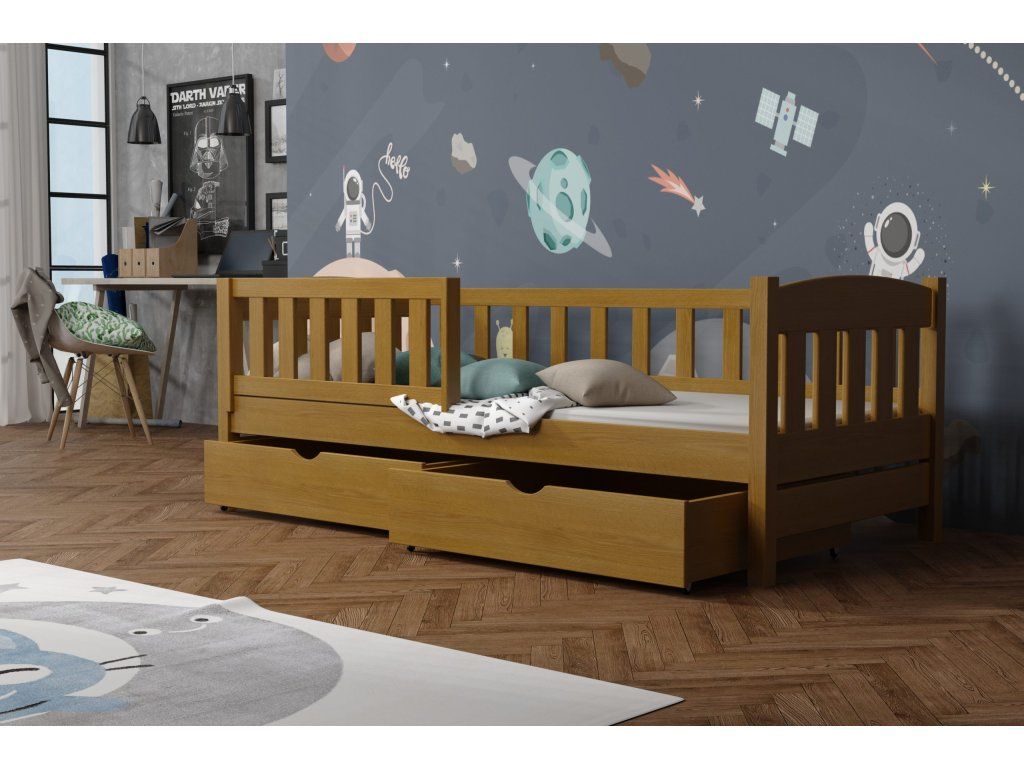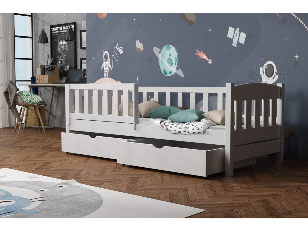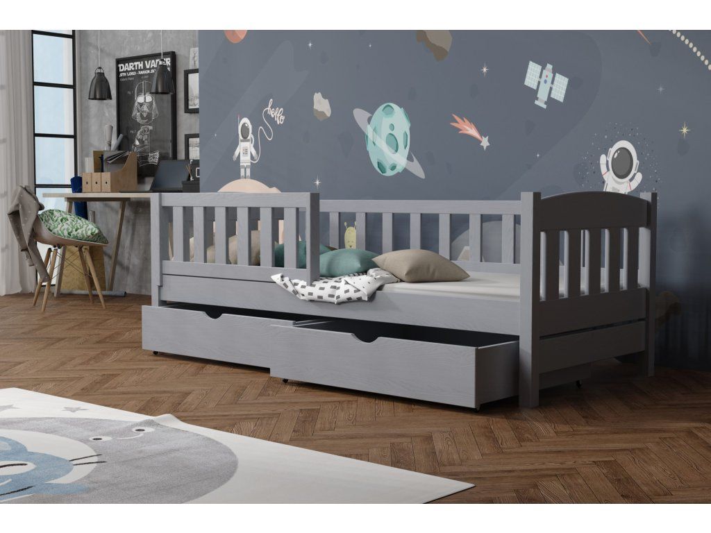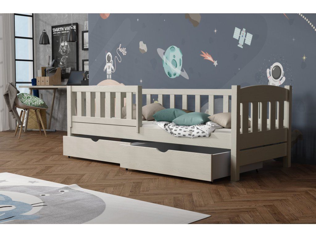 Dětská postel vyrobena z masivního borovicového dřeva zaručuje dlouhou životnost a stabilitu. Díky modernímu a nadčasovému designu se hodí do jakéhokoli dětského pokoje.