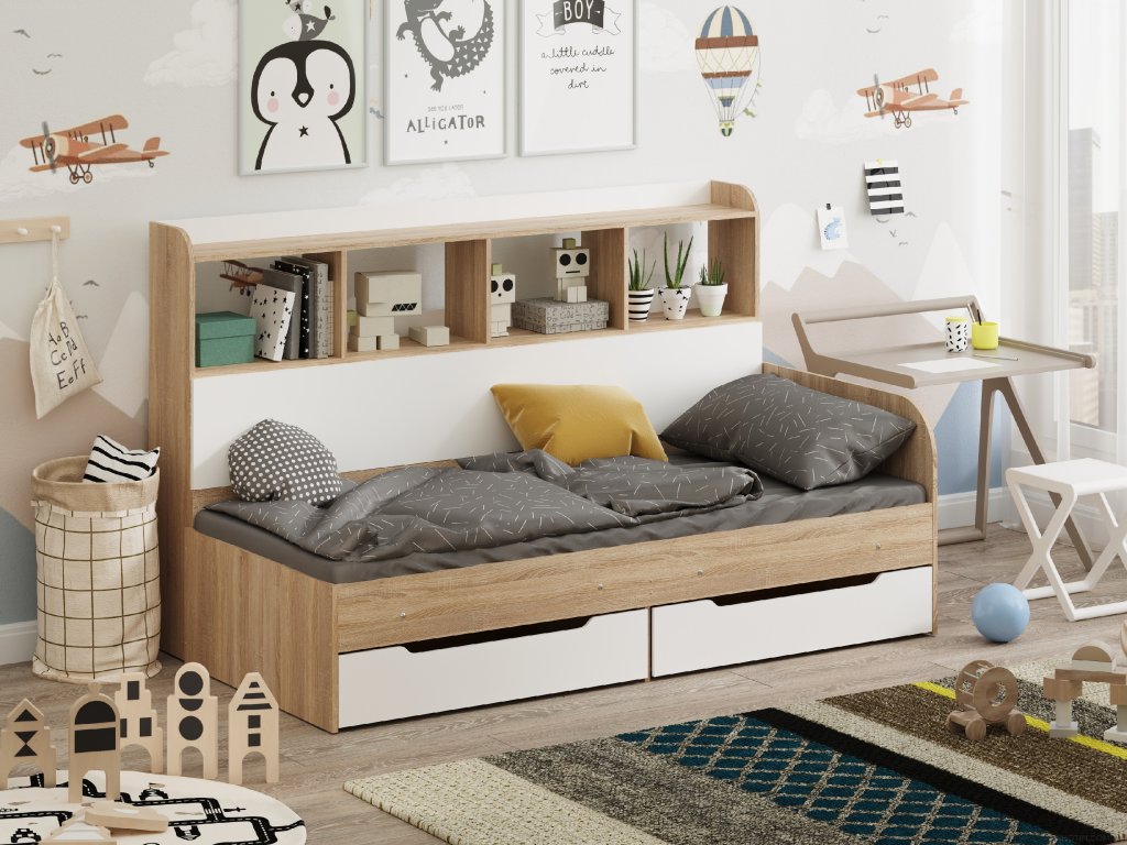 Dětská postel Sonya 200x90 cm se zásuvkami a otevřeným regálem – perfektní volba pro pokoj vašich dětí!