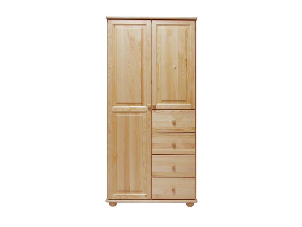 Skříň je vyrobena z masivu borovice první jakosti, který je známý svou pevností, stabilitou a přirozenou kresbou dřeva. Každý kus je originál, jenž do interiéru vnese teplo a přírodní atmosféru. Kvalitní povrchová úprava chrání dřevo proti běžnému opotřebení a zároveň zvýrazňuje jeho strukturu.