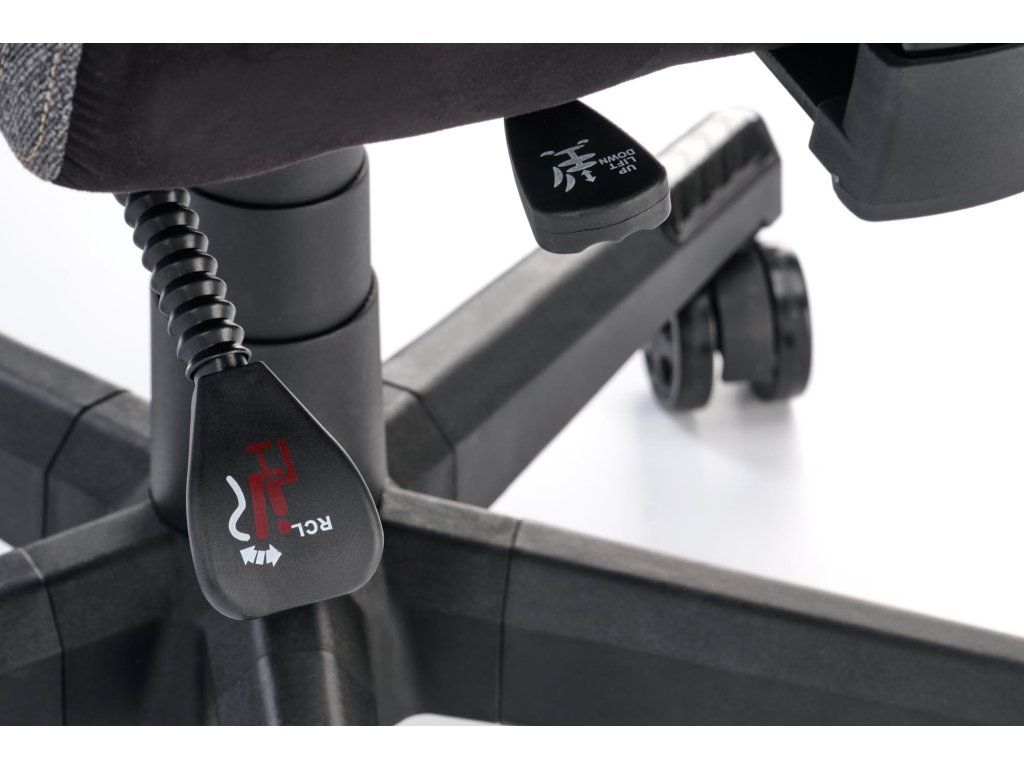 Střízlivý šedý odstín v kontrastu s černými prvky působí decentně a profesionálně – perfektně zapadne jak do moderní kanceláře, tak do domácího herního koutku.