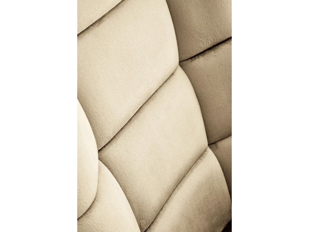 Houpací křeslo LOGAN je čalouněno měkkou a příjemnou béžovou sametovou látkou, která působí luxusně a na slunci jemně třpytí. Díky své hladké a jemné textuře poskytuje skutečně pohodlný zážitek z posezení. Křeslo je umístěno na stabilní houpací podnoži z práškově lakované oceli a masivního černého dřeva, což zajišťuje pevnost i dlouhou životnost.