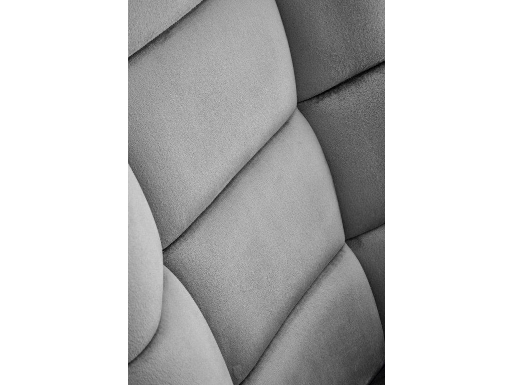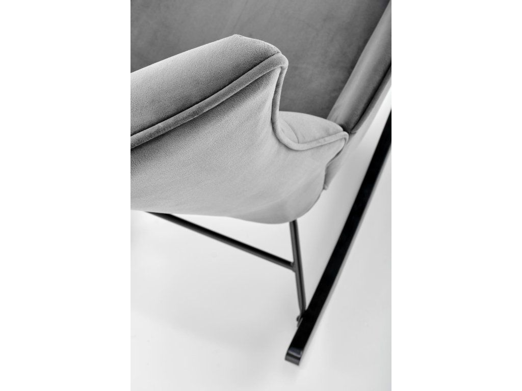 Houpací křeslo LOGAN je čalouněno jemnou šedou sametovou látkou, která působí nadčasově a vkusně zapadne do různých stylů interiéru. Sametový potah je hladký, příjemný na dotek a při dopadu světla jemně odráží lesk, což dodává křeslu nádech luxusu. Podnož z práškově lakované oceli v kombinaci s masivním černým dřevem zajišťuje pevnost, stabilitu a dlouhou životnost.
