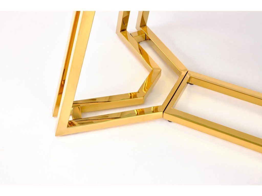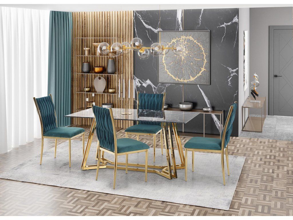 Luxusní design: Geometrická zlatá podnož a elegantní černý mramor na skleněné desce dodají vaší jídelně sofistikovaný a moderní vzhled.