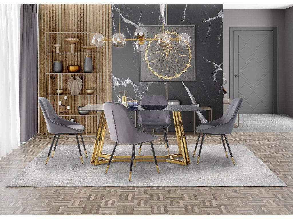 Jídelní stůl NILTON 160x90 cm – Černý mramor/Zlatý