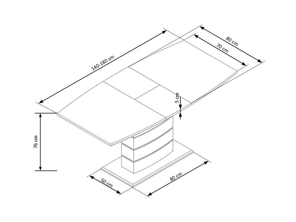 Praktické rozkládání: Stůl je vybaven rozkládací vložkou, díky které lze délku desky prodloužit z 140 cm na 180 cm. Ideální pro chvíle, kdy máte více hostů a potřebujete více místa pro jídlo nebo setkání s rodinou a přáteli.