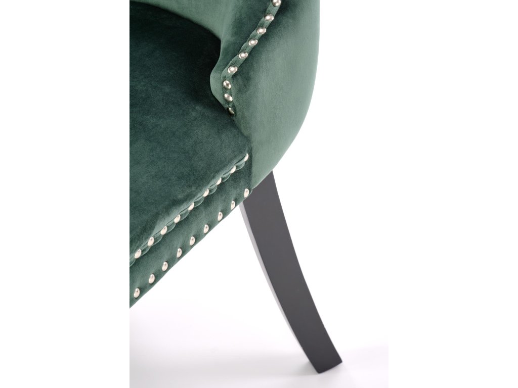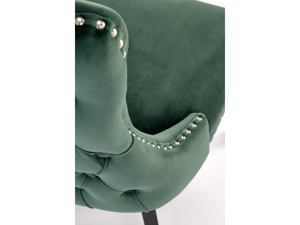 Jídelní židle BETHIA v sytě zeleném odstínu přináší do interiéru osvěžující barvu, která vynikne jak v moderním, tak i klasickém prostoru. Sametové velurové čalounění dodává židli luxusní vzhled a příjemný dotek, zatímco prošívané opěradlo s dekorativními kamínky vytváří elegantní detail s jemným leskem.