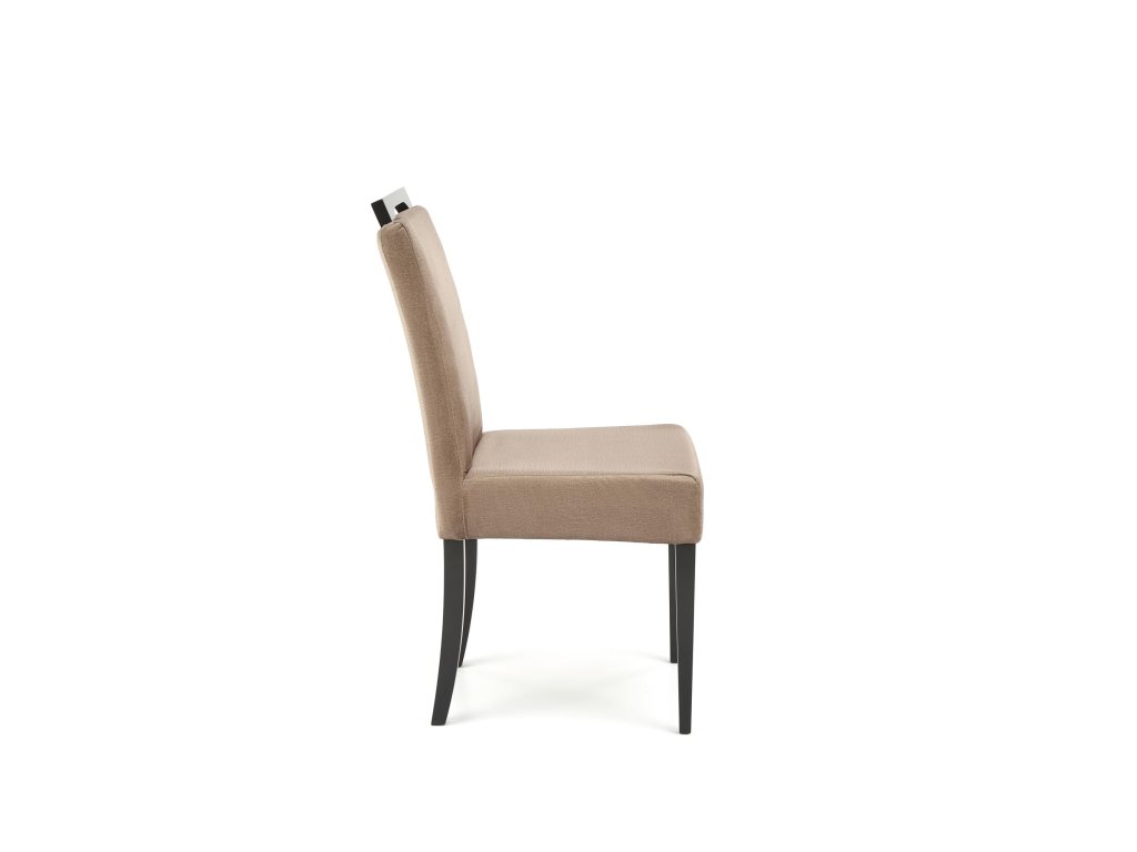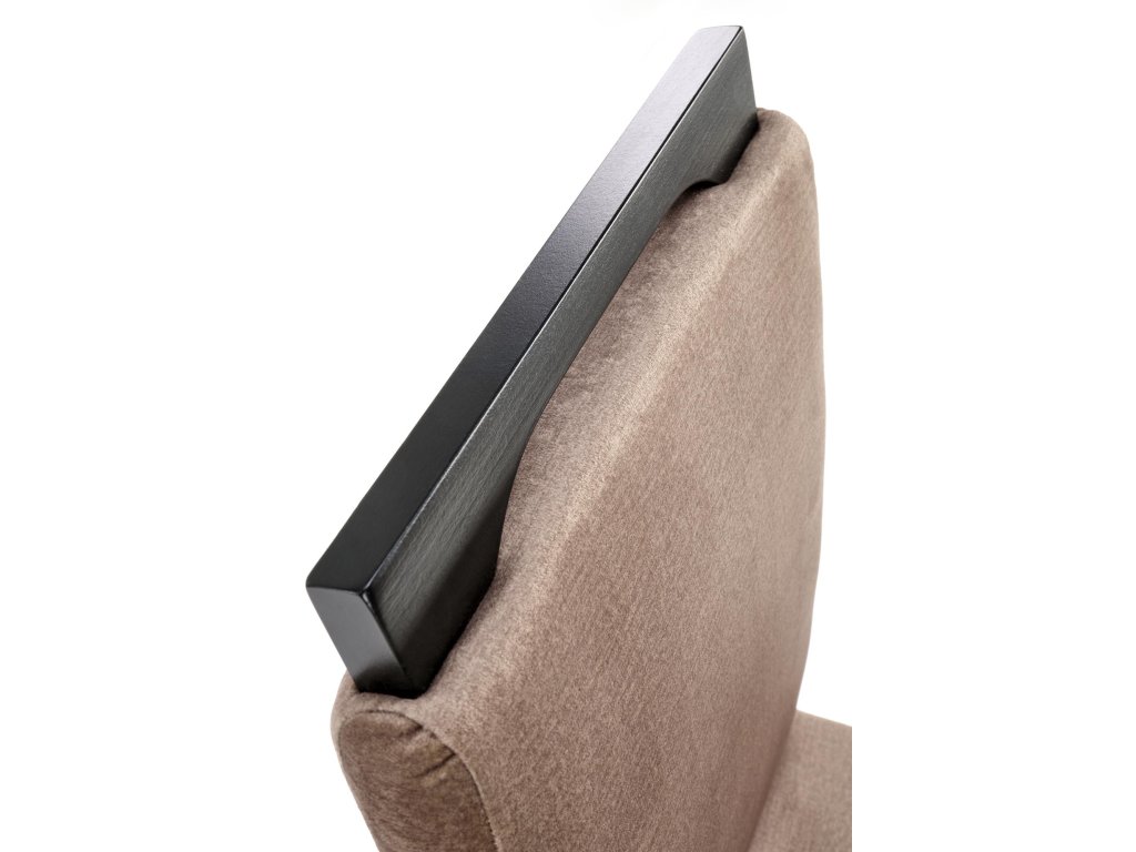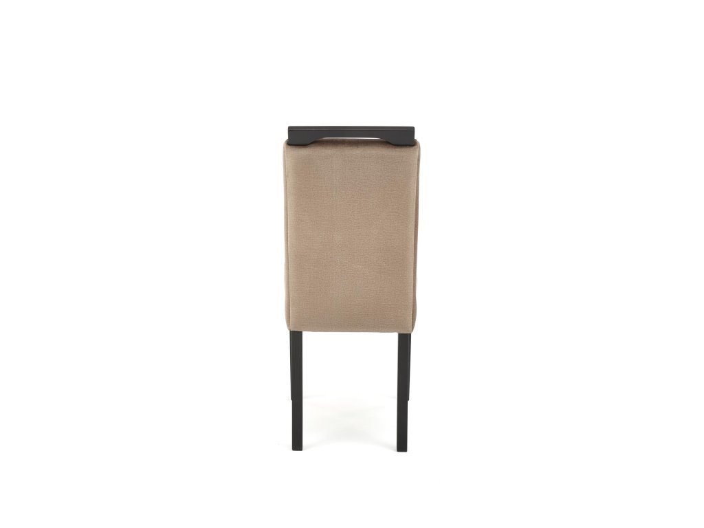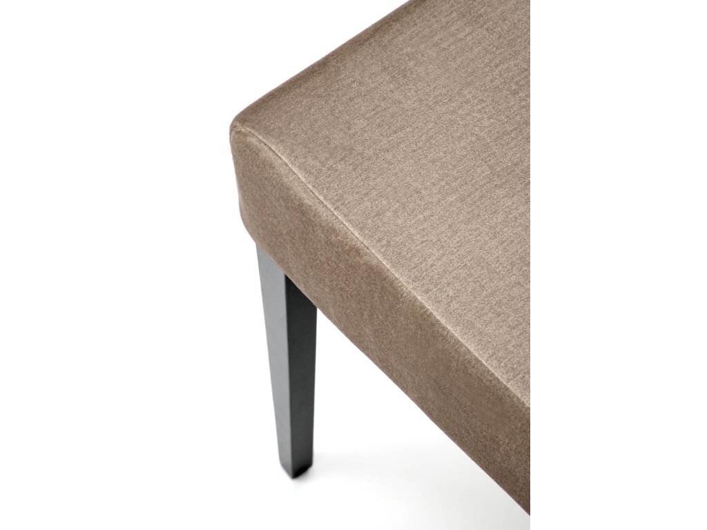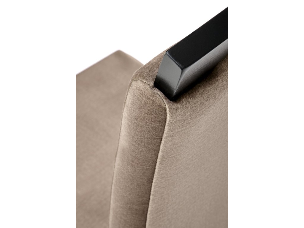 Měkké čalounění z jemného veluru v béžovém odstínu působí hřejivě a elegantně. Potah je příjemný na dotek, snadno se udržuje a dodává židli nadčasový vzhled. Čtyři rovné nohy z masivního bukového dřeva v černé barvě zajišťují stabilitu a dlouhou životnost. Vysoký opěrák s praktickým madlem přes celou šířku usnadňuje manipulaci a podtrhuje vytříbený styl. Židle je vybavena také područkami, které zvyšují pohodlí při každodenním používání.