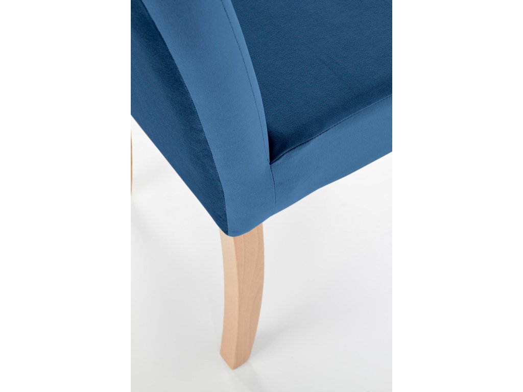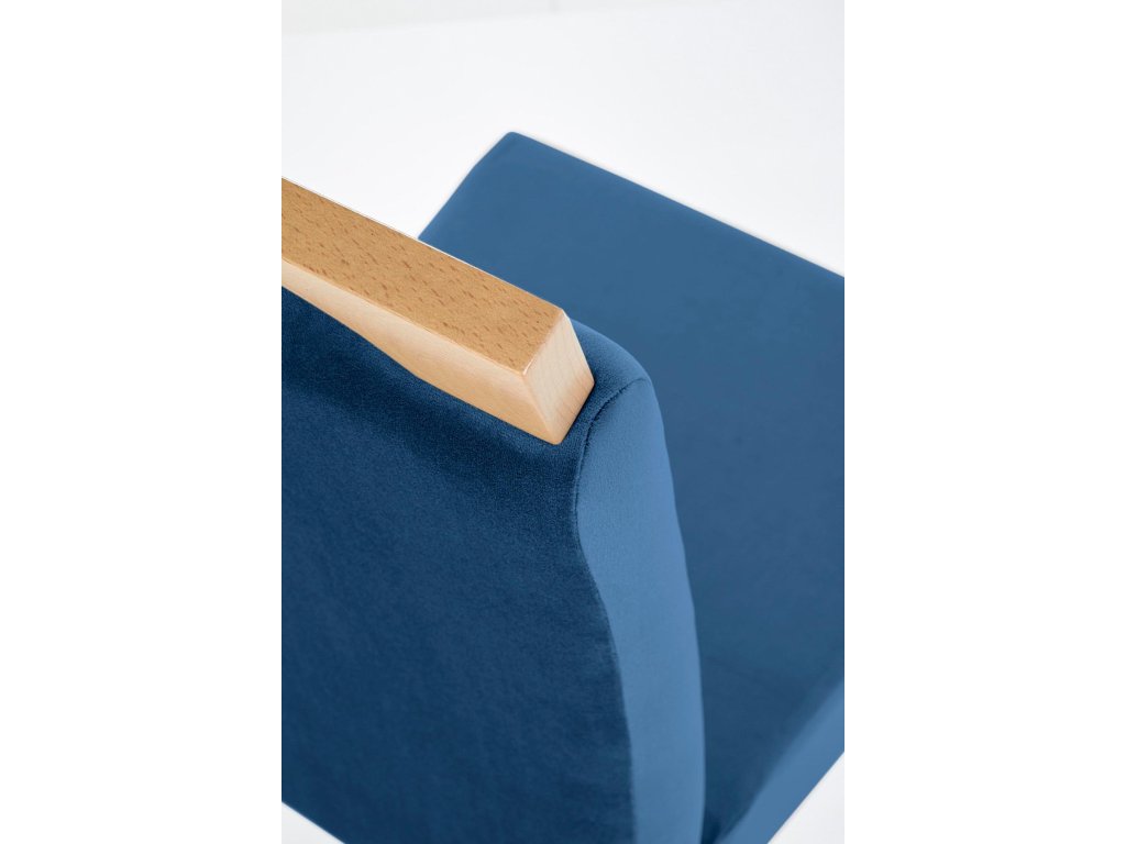 Čalounění z jemného veluru v sytě granátové barvě působí elegantně a zároveň útulně. Potah je měkký na dotek, snadno se udržuje a dodává nábytku osobitý charakter. Stabilitu a pevnost zajišťují černé nohy z masivního bukového dřeva, které zároveň vytvářejí stylový kontrast. Vysoký opěrák s praktickým madlem přes celou šířku usnadňuje manipulaci a podtrhuje design židle. Područky zvyšují komfort při delším sezení.