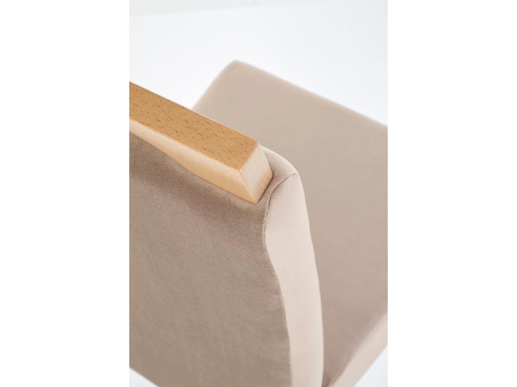 Čalounění z měkkého veluru v hnědém odstínu působí útulně a přirozeně. Potah je příjemný na dotek, dobře se udržuje a dodává židli decentní eleganci. Čtyři rovné nohy z masivního bukového dřeva v černé barvě zajišťují výbornou stabilitu a dlouhou životnost. Vysoký opěrák s praktickým madlem po celé šířce usnadňuje manipulaci, zatímco područky zvyšují komfort při každodenním sezení.