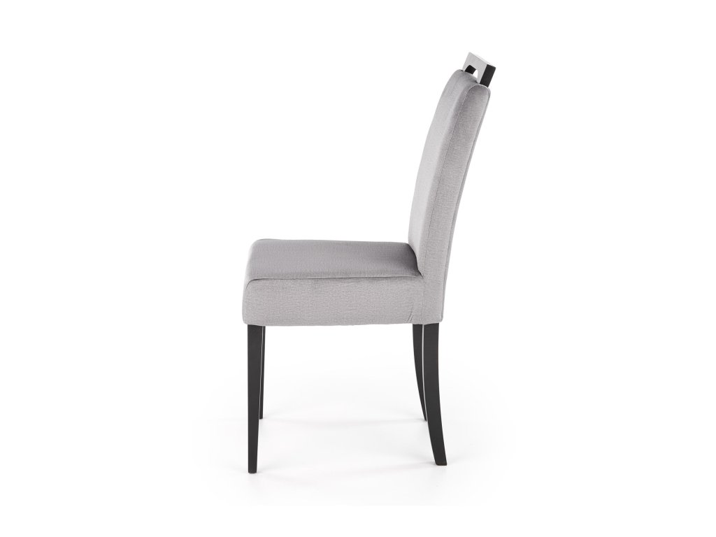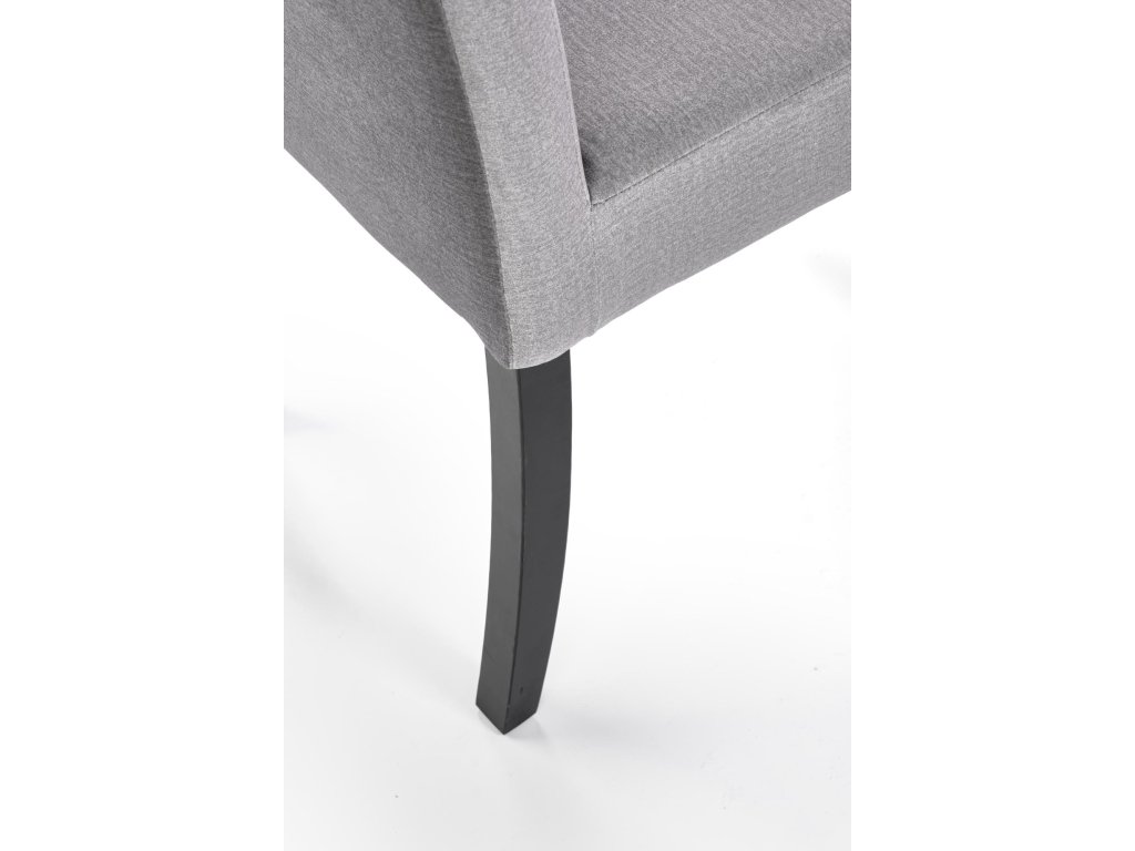 Měkké čalounění z jemného veluru v elegantním šedém odstínu působí decentně, ale zároveň velmi vkusně. Potah je příjemný na dotek, snadno se udržuje a dodává židli sofistikovaný vzhled. Čtyři rovné nohy z masivního bukového dřeva v černé barvě zajišťují stabilitu a dlouhou životnost. Vysoký opěrák s praktickým madlem přes celou šířku usnadňuje manipulaci a dotváří elegantní tvar židle. Područky navíc zajišťují vyšší pohodlí při sezení.