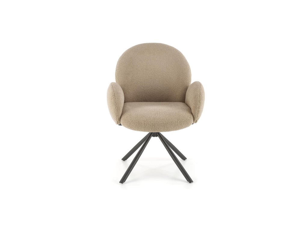 Otočná jídelní židle / křeslo VMK498 v odstínu cappuccino vyniká osobitým vzhledem, který kombinuje funkčnost s moderním stylem. Je čalouněná kvalitní látkou bouclé – měkkým, strukturovaným materiálem s charakteristickými uzly, které dodávají židli jedinečný vzhled a nádech elegance.