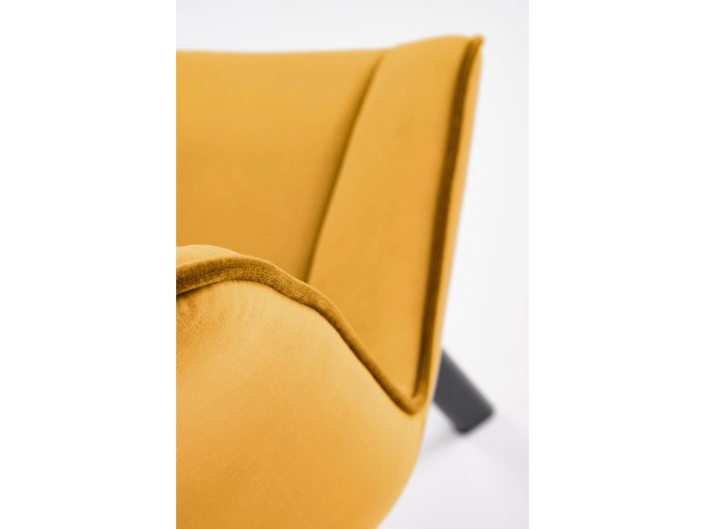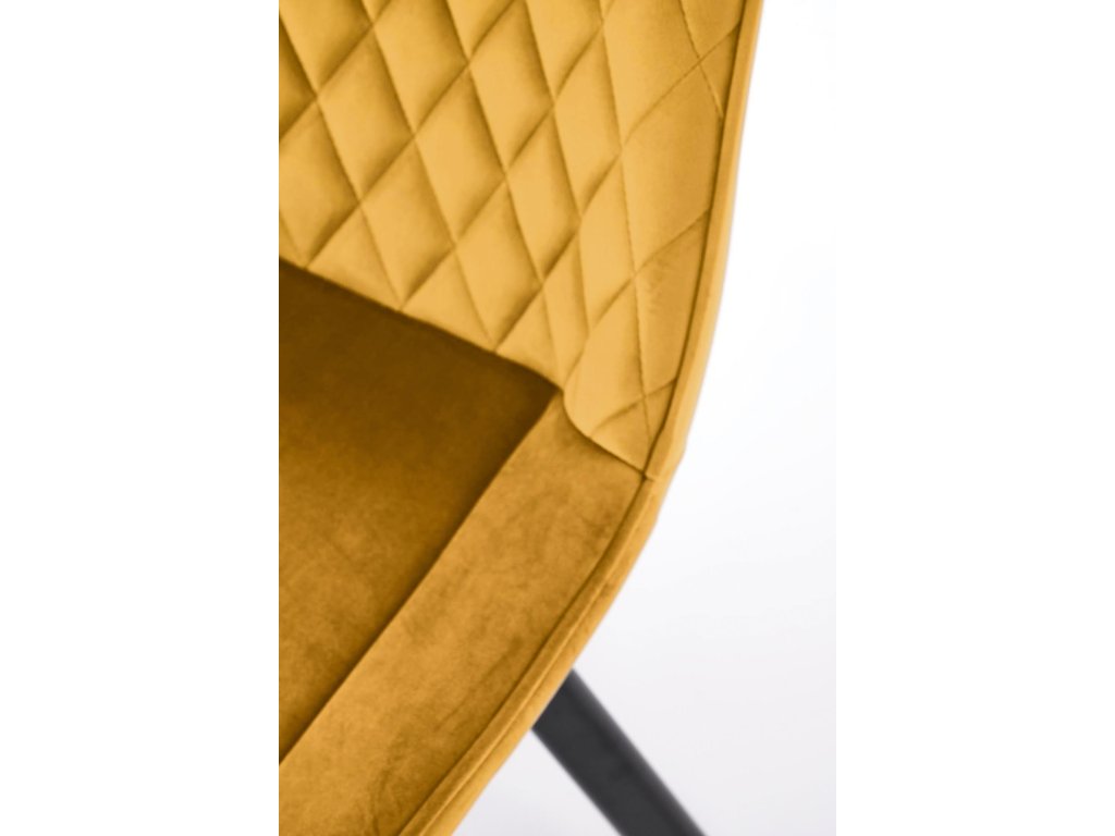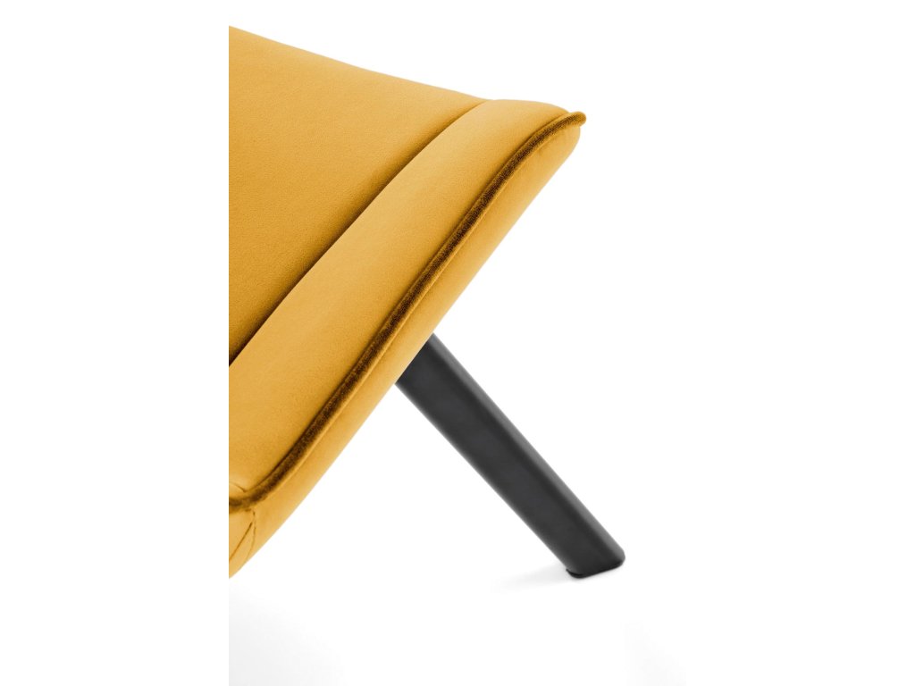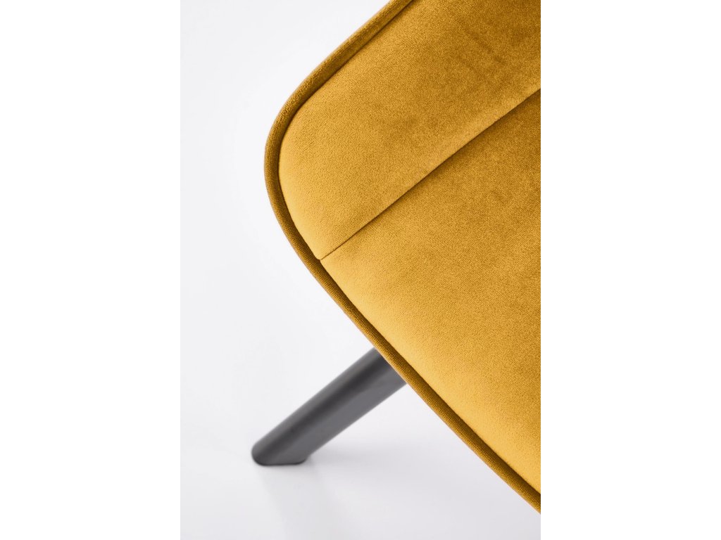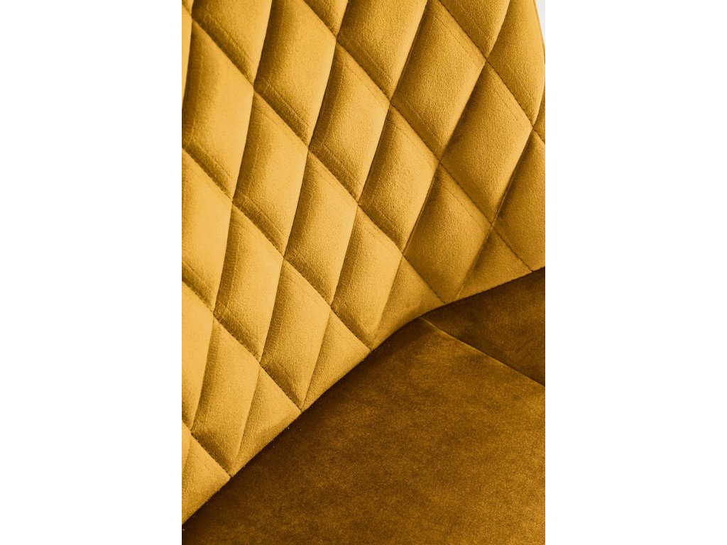Elegantní hořčicově žlutá sametová látka: Opěradlo židle je potaženo jemně lesklou sametovou látkou, která nejen vypadá elegantně, ale je i příjemně měkká na dotek. Tato teplá barva dodává interiéru svěží, moderní a útulný vzhled.