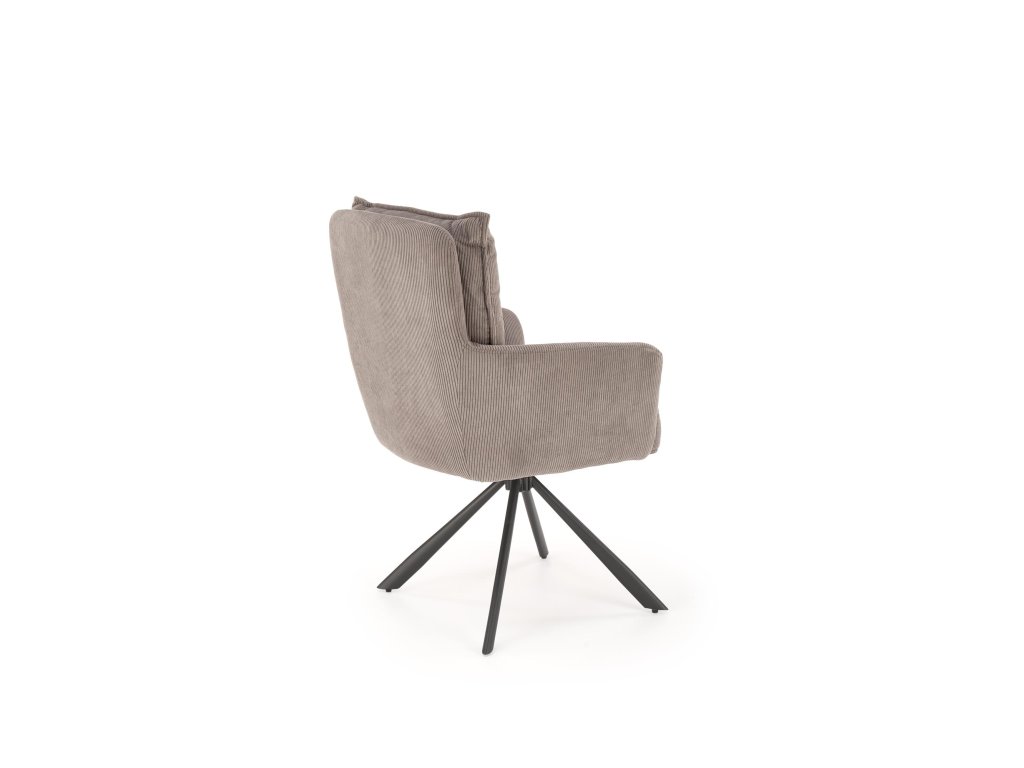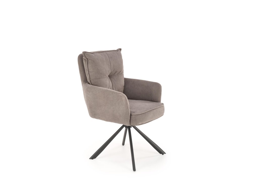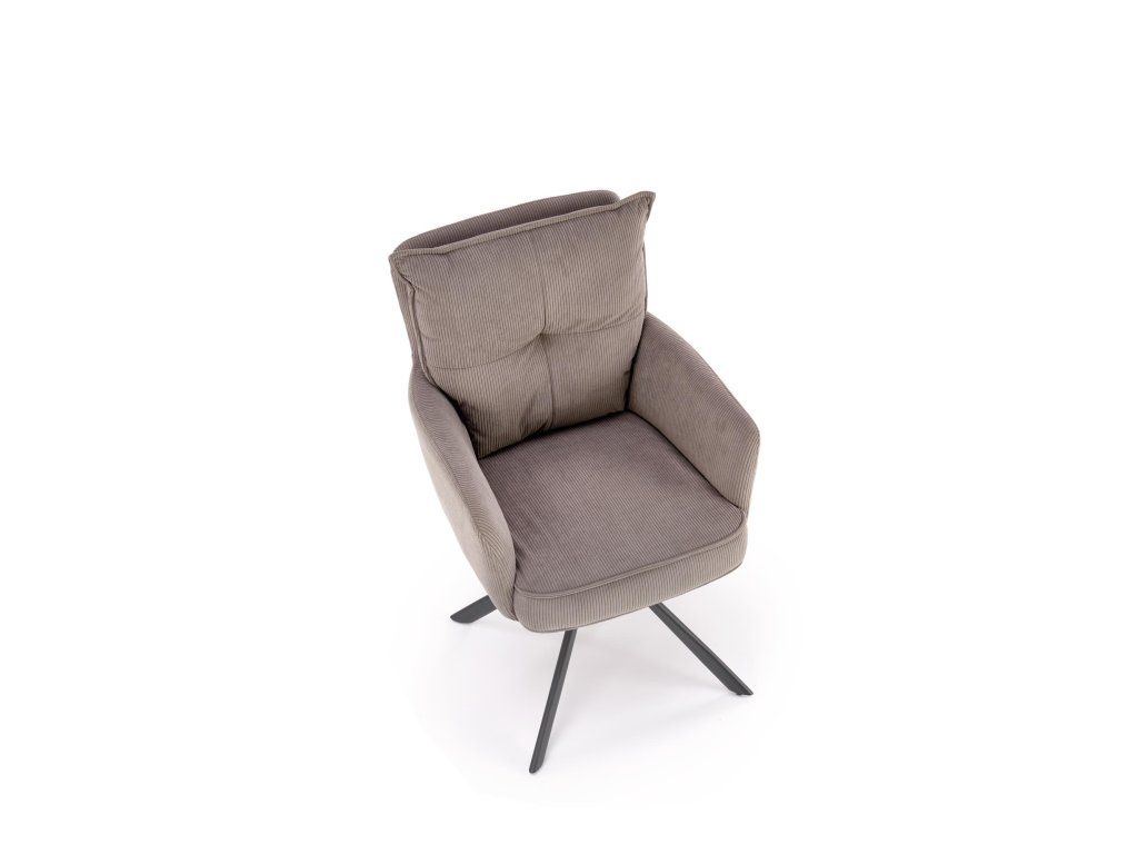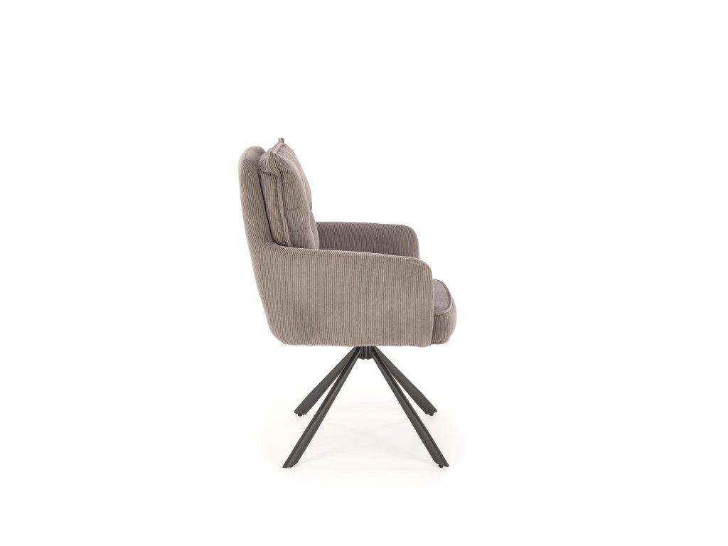 Povrch křesla je potažen příjemnou manšestrovou tkaninou, která je nejen vizuálně atraktivní, ale i měkká na dotek a snadná na údržbu. Stabilní ocelová podnož s práškovým nástřikem zajišťuje pevnost konstrukce, přičemž celková nosnost křesla je 100 kg.
