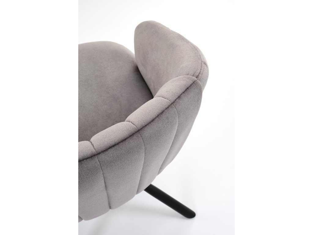 Jídelní židle VMK533 je vyrobena z kvalitní lakované oceli v černé barvě, která poskytuje pevnost a stabilitu, a čalouněného sedáku v příjemné šedé barvě. Potažena je kvalitní látkou HAVANA 39, která je odolná a snadno udržovatelná, což zajišťuje dlouhou životnost židle. Otočný mechanismus umožňuje otáčení židle o 180 stupňů, což přináší další pohodlí při jejím používání.