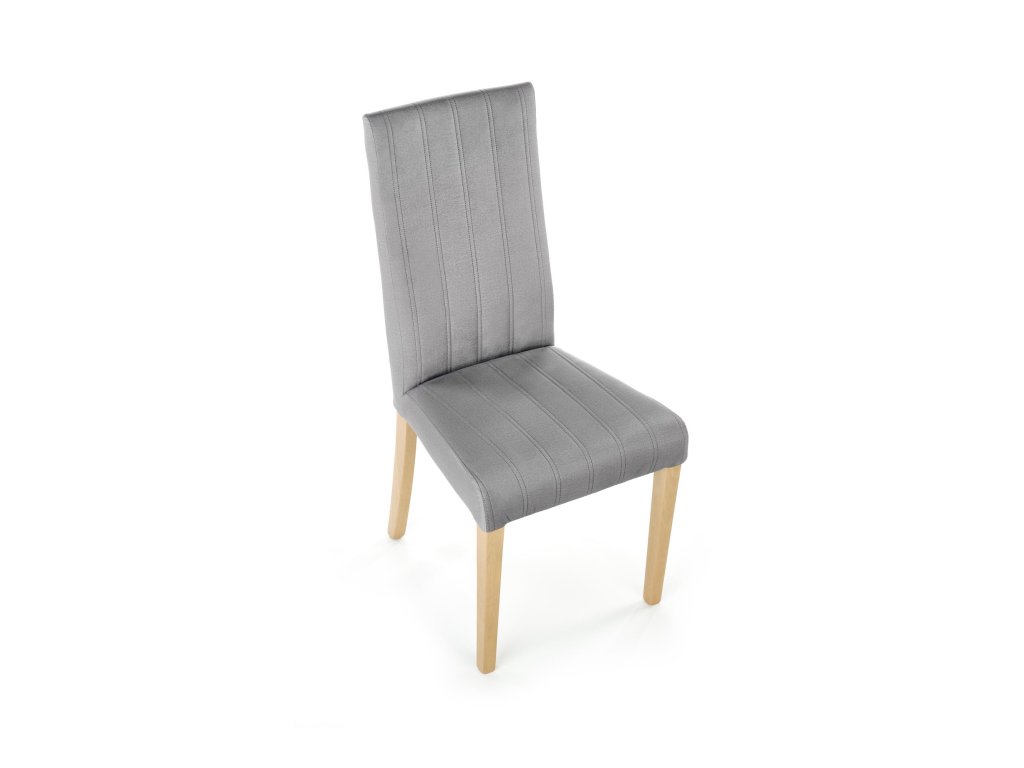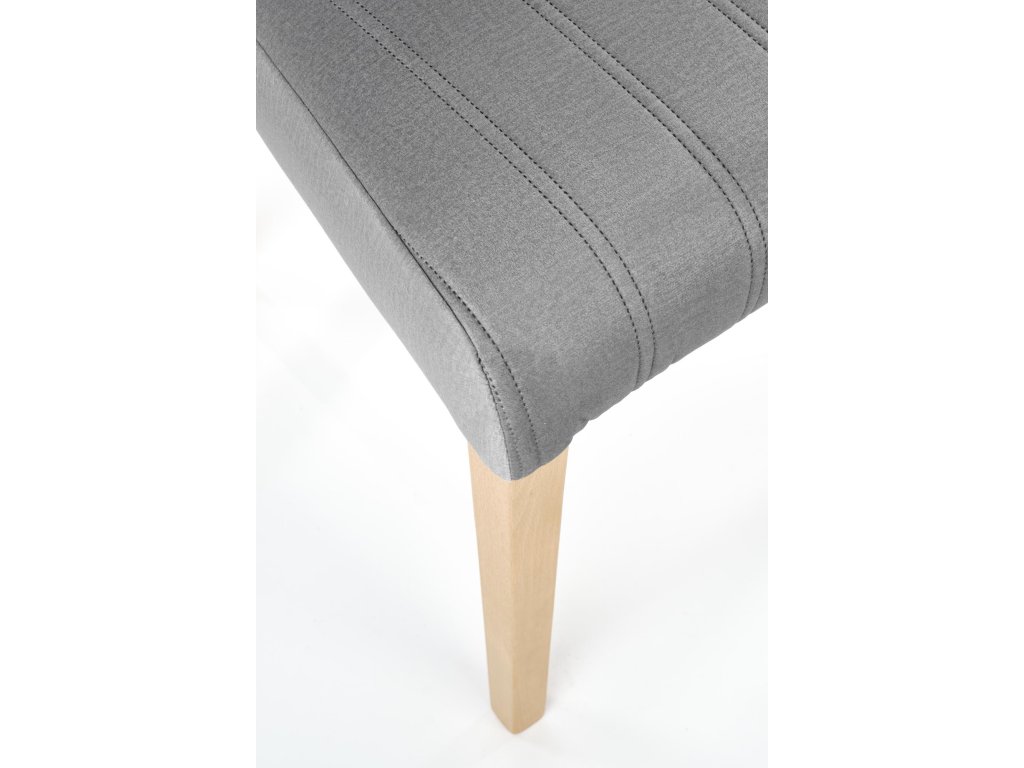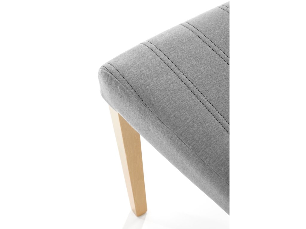 Nohy židle jsou vyrobeny z masivního bukového dřeva v přírodní barvě, což zajišťuje stabilitu, pevnost a dlouhou životnost. Jemné prošívání na sedáku i opěradle zdůrazňuje celkovou eleganci a kvalitní řemeslné zpracování. Kombinace šedé látky a světlého dřeva vytváří čistý, vzdušný a moderní vzhled vhodný do jídelny i obývacího pokoje.