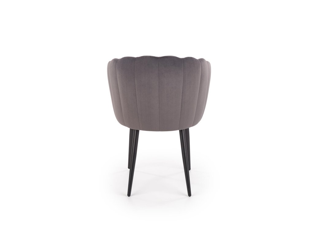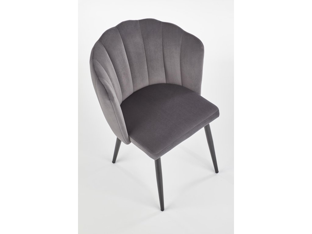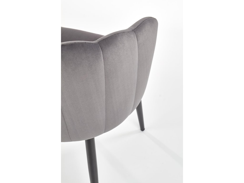 Stylové šedé křeslo VMK386 je ideálním doplňkem do moderní jídelny, obývacího pokoje nebo pracovny. Nadčasový glamour design v kombinaci se sametovým čalouněním a profilovaným opěradlem s bočnicemi vytváří nábytek, který zaujme svým vzhledem i komfortem. Zaoblený tvar opěradla s dekorativním prošíváním připomíná mušli a nabízí vysoký komfort při sezení.