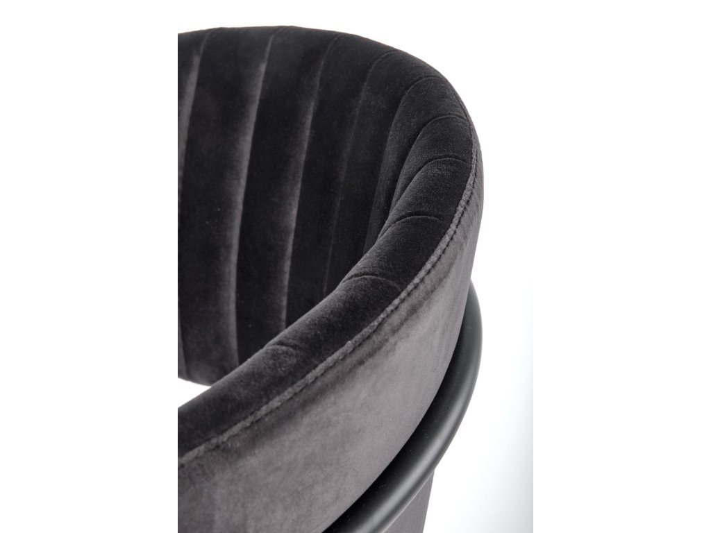 Jídelní židle s područkami VMK426 zaujme svým moderním designem, komfortem a nadčasovým černým sametovým čalouněním. Díky propracovaným detailům, jako je dekorativní prošívání na opěradle, se stává atraktivním doplňkem do interiérů zařízených ve stylu glamour, industriálním nebo minimalistickém.