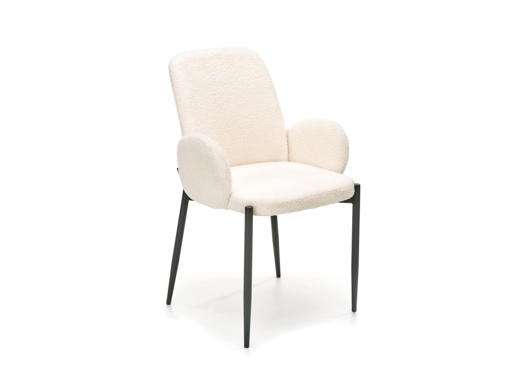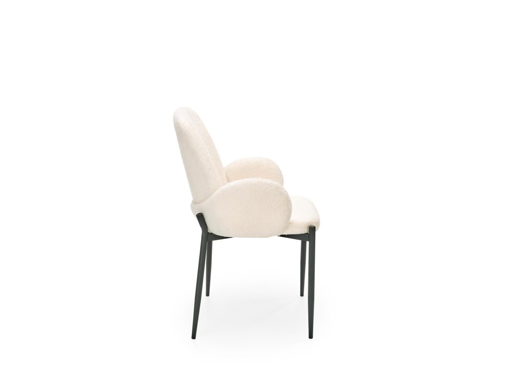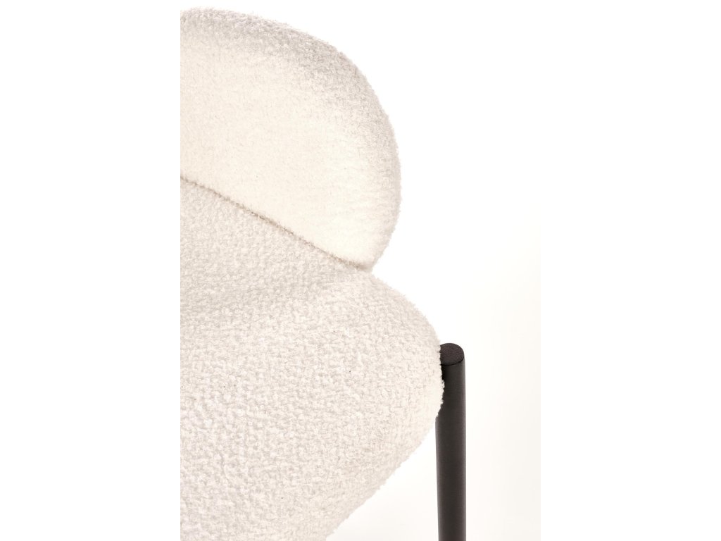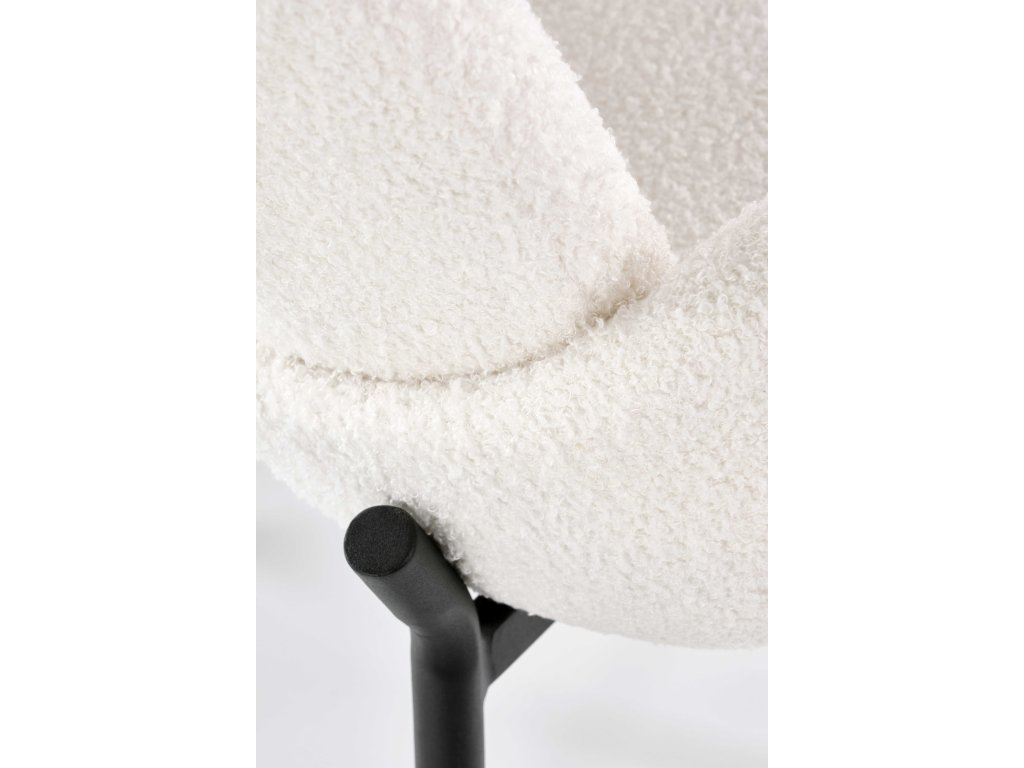 Opěradlo i sedák jsou čalouněny kvalitní boucle látkou, která je příjemná na dotek, měkká a nadýchaná, což zajišťuje komfort i při delším sezení. Židle je vybavena pohodlnými područkami a celá konstrukce působí velmi uceleným, moderním dojmem.