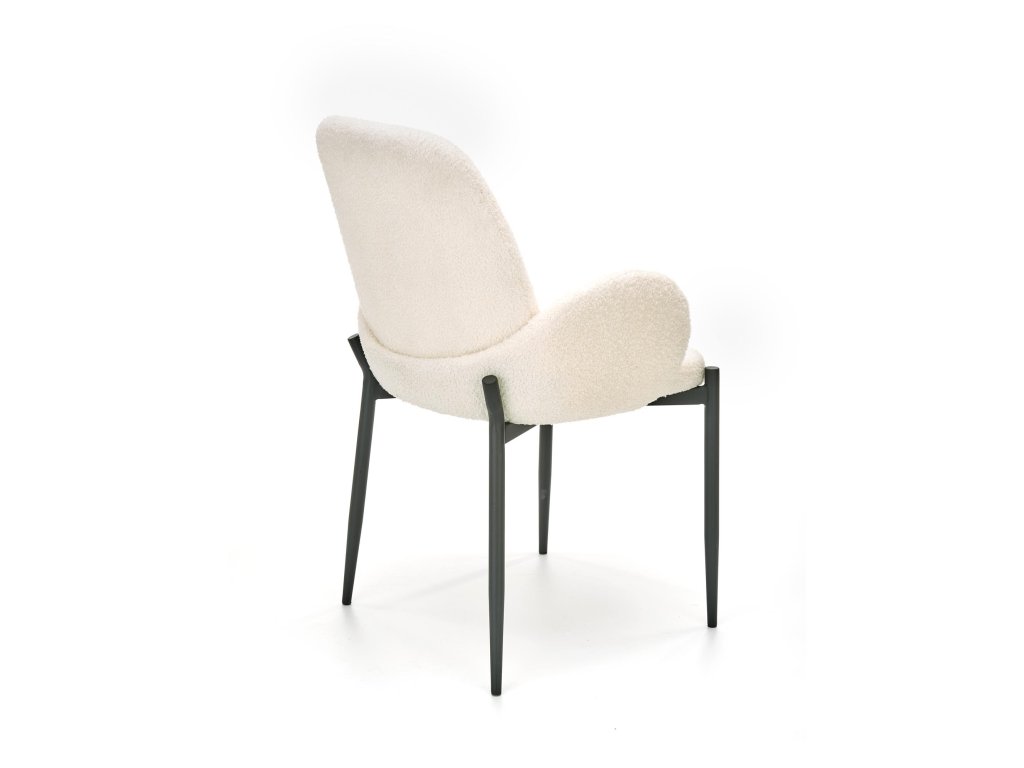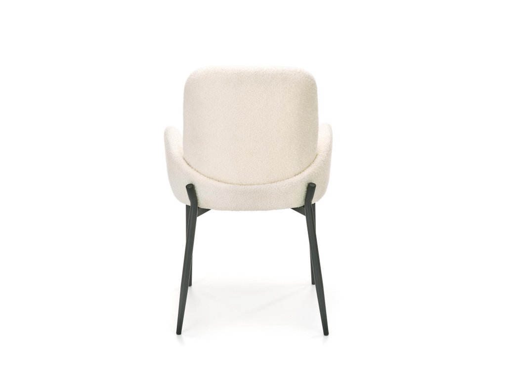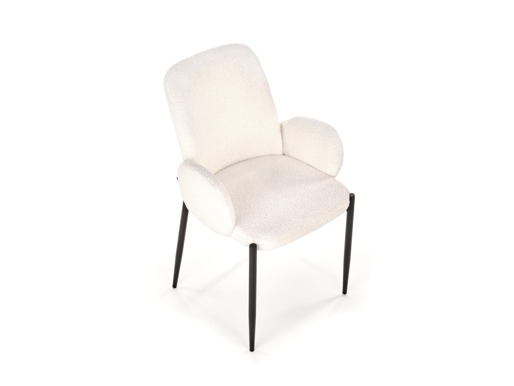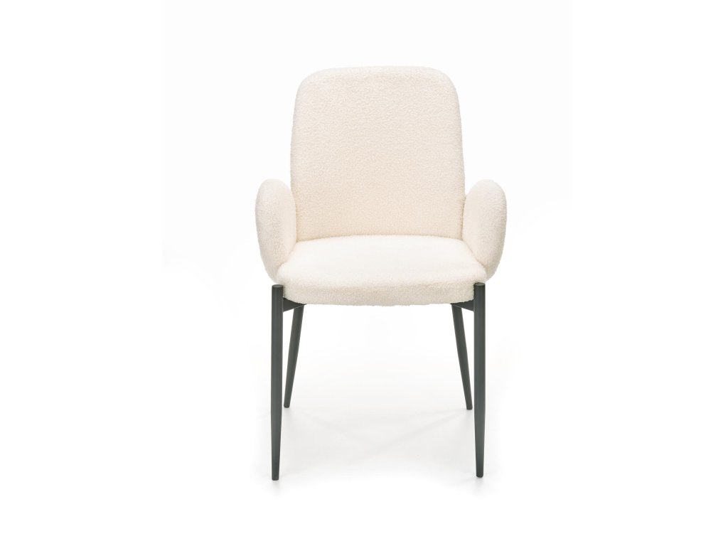 Opěradlo i sedák jsou čalouněny kvalitní boucle látkou, která je příjemná na dotek, měkká a nadýchaná, což zajišťuje komfort i při delším sezení. Židle je vybavena pohodlnými područkami a celá konstrukce působí velmi uceleným, moderním dojmem.