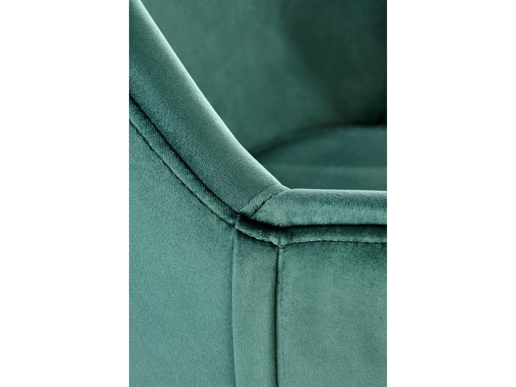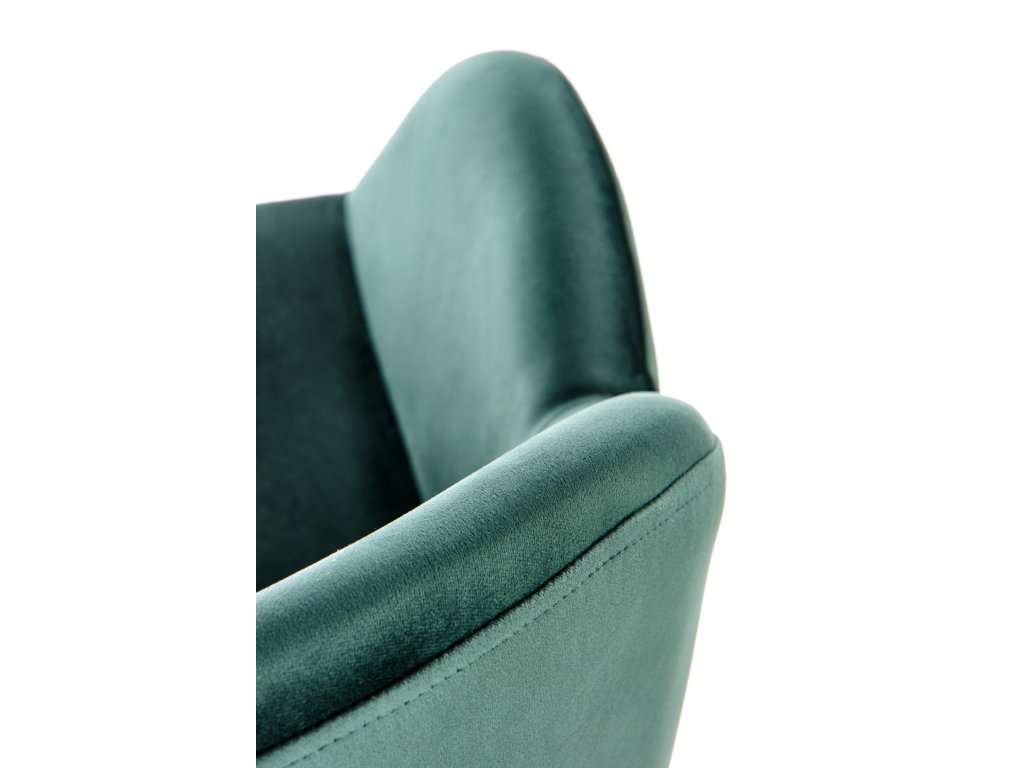 Jídelní židle VMK480 v tmavě zelené barvě je ideální volbou pro ty, kteří hledají spojení stylového designu a maximálního komfortu. Čalouněná židle s sametovou látkou v módním odstínu tmavé zelené dodá vašemu prostoru elegantní a uklidňující atmosféru. Tvarované opěradlo a područky zajišťují vysoký komfort při každodenním používání.
