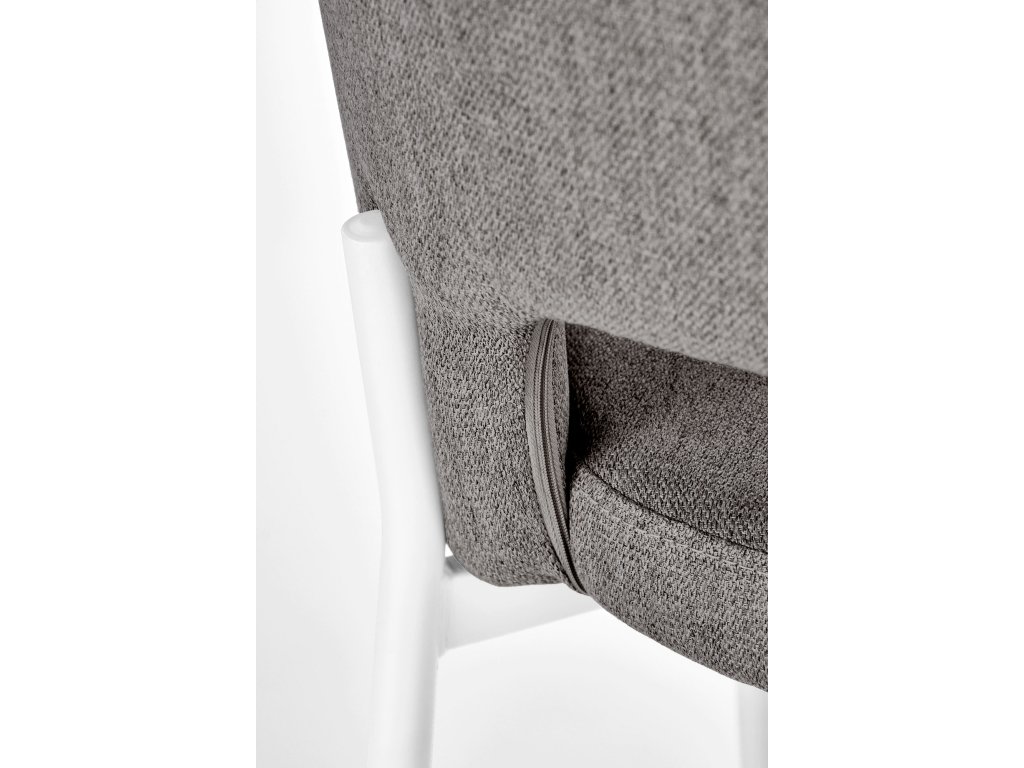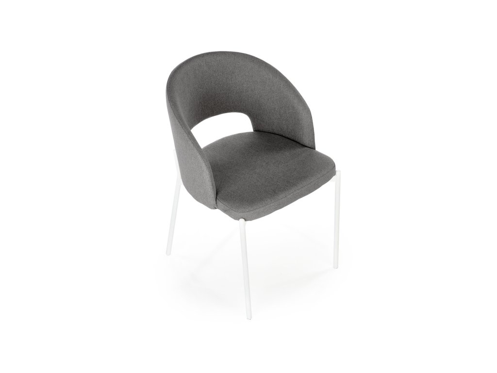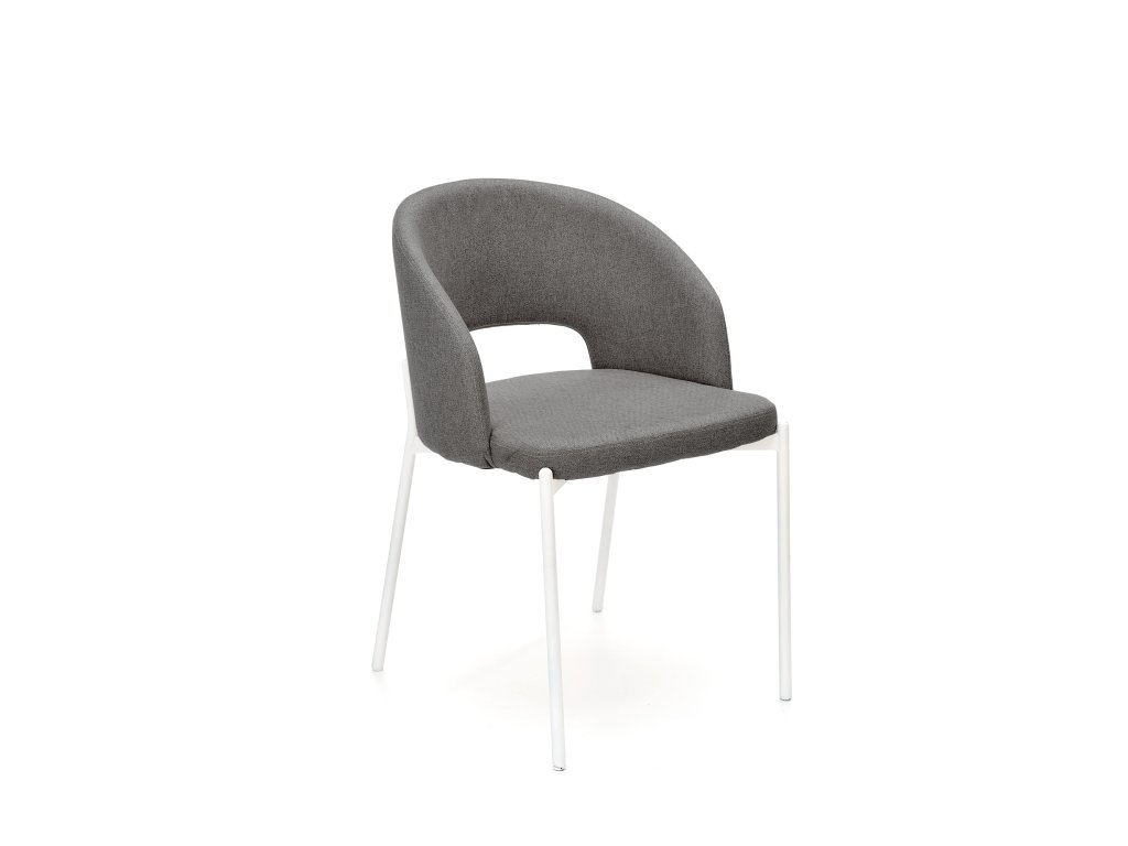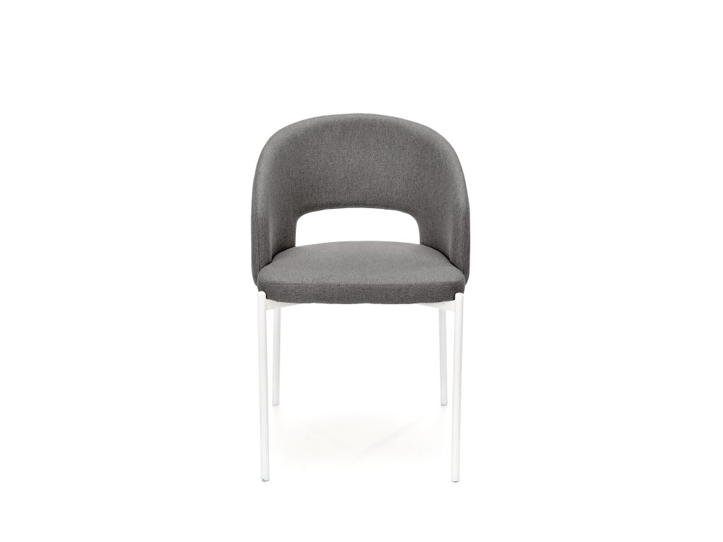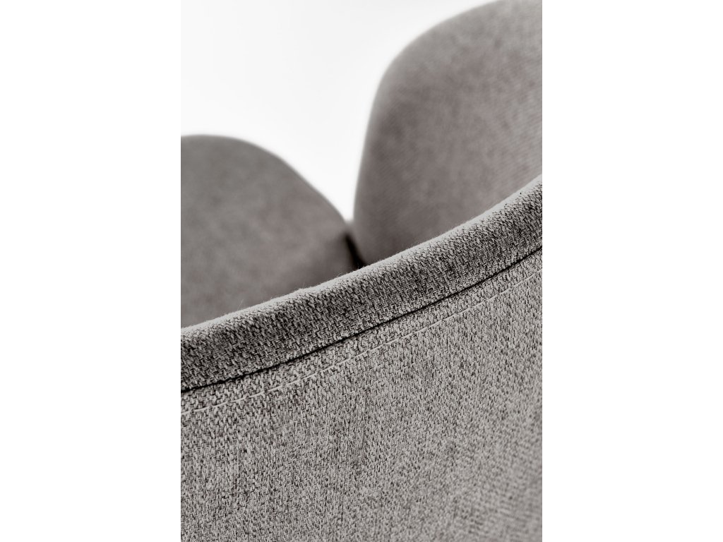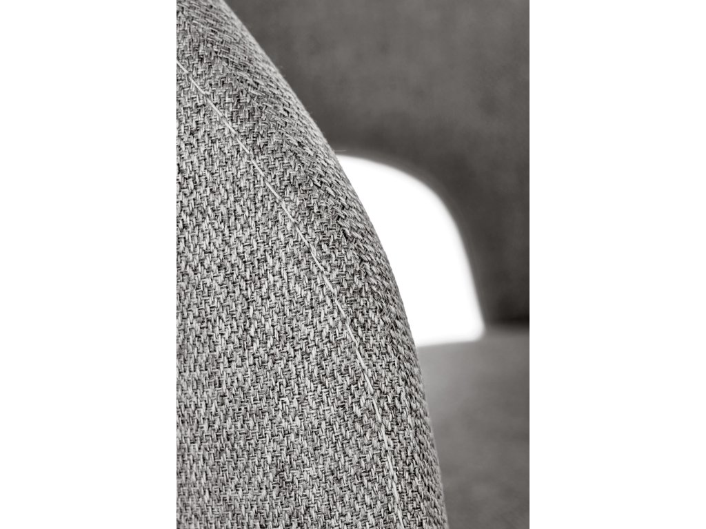 Čalounění z kvalitní, prodyšné a odolné látky zajišťuje komfort i při delším sezení. Neutrální šedá barva působí elegantně, nadčasově a snadno se kombinuje s různými barevnými schématy interiéru. Klenuté opěradlo dodává židli moderní charakter a podtrhuje její estetickou hodnotu.