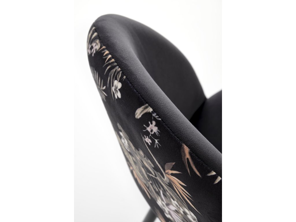 Originální rostlinný motiv: Opěrná část židle je zdobena jemným rostlinným motivem, který přidává židli jedinečný charakter a eleganci. Tento designový prvek dodává nábytku osobitost a dělá z každé židle výjimečný dekorativní kousek.