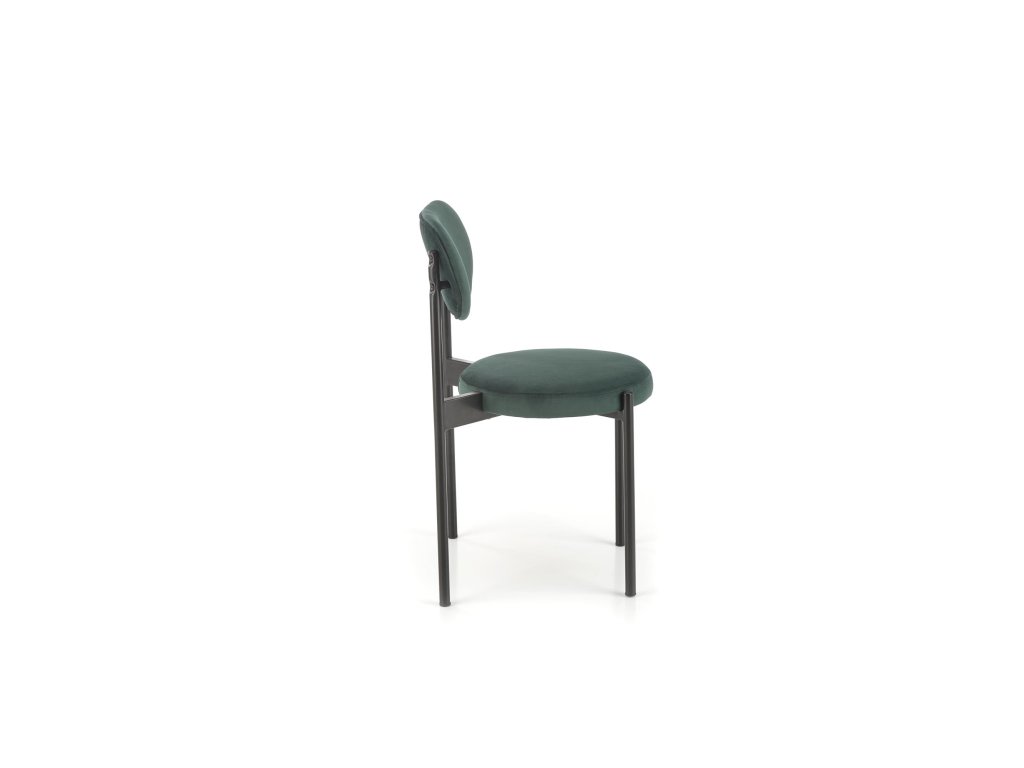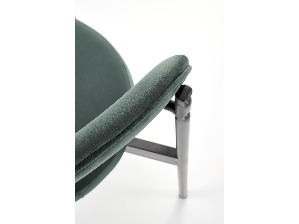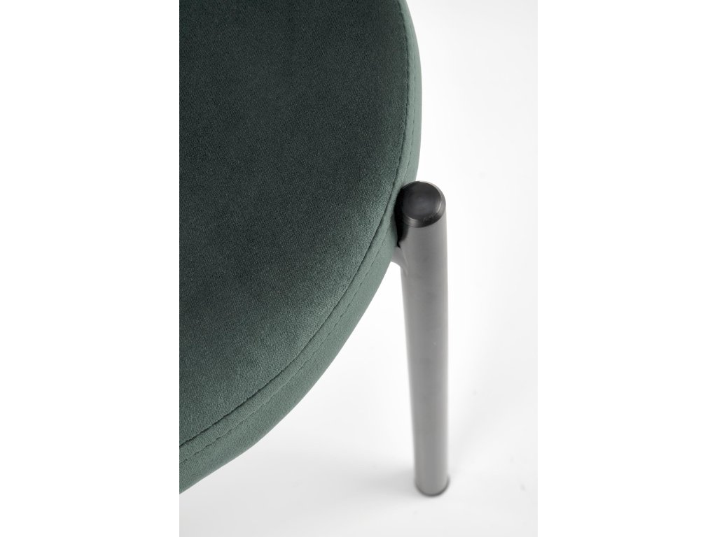 Elegantní design: Židle VMK509 je potažena kvalitní zelenou sametovou látkou, která se jemně leskne na slunečním světle a mění svůj odstín podle směru vláken. Tento efekt jí dodává originální vzhled, který upoutá pozornost a vdechne prostoru šmrnc.