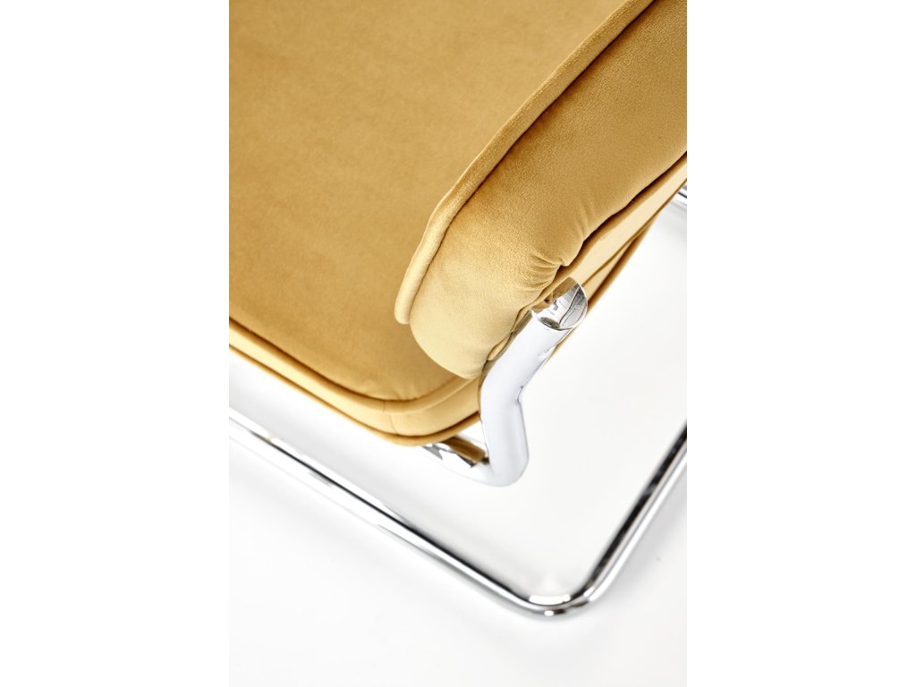 Elegantní design: Hořčičová barva v kombinaci se stříbrnou podnoží je ideální pro moderní interiéry, kde vynikne její jedinečný vzhled.