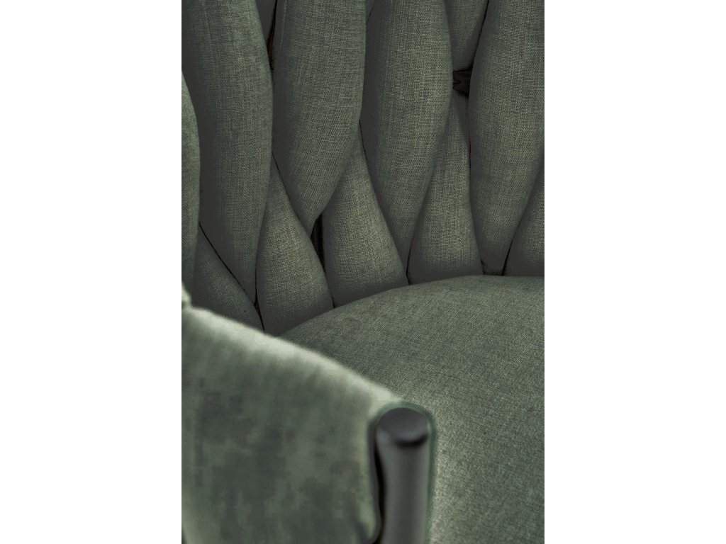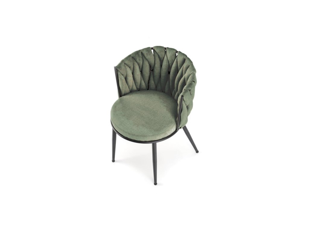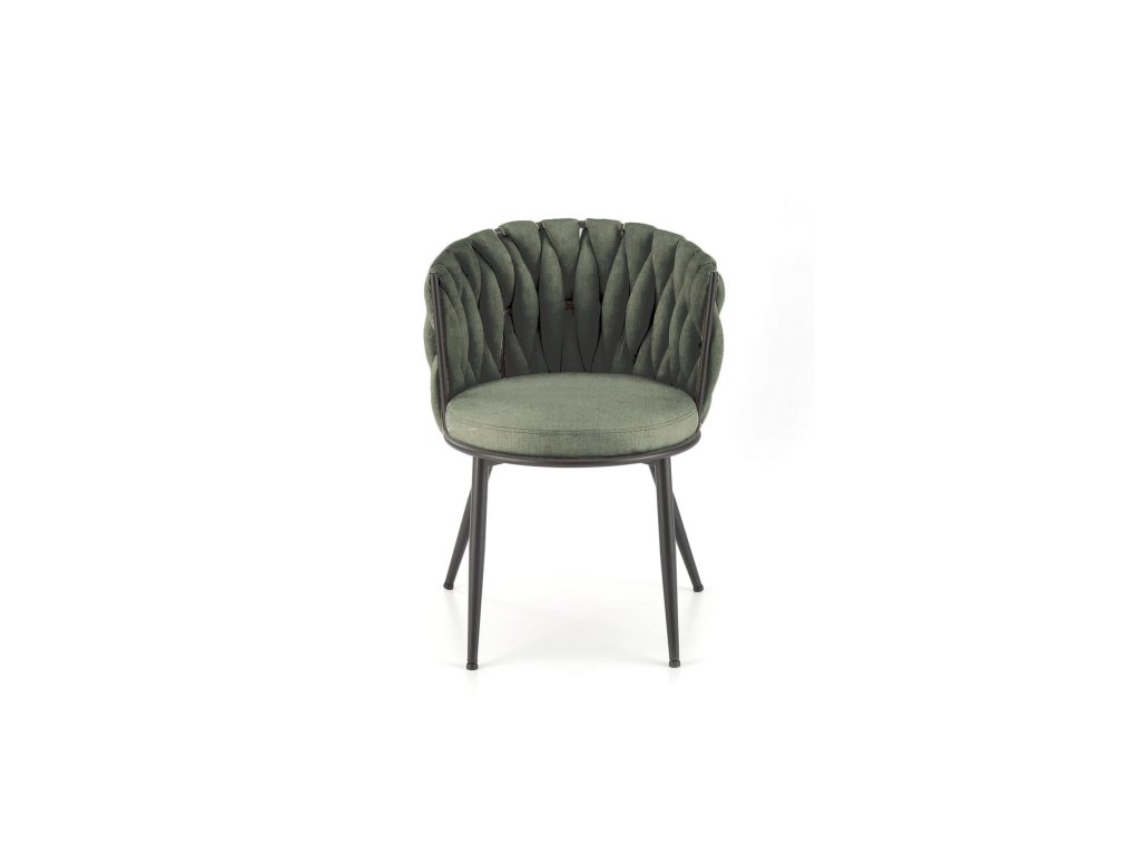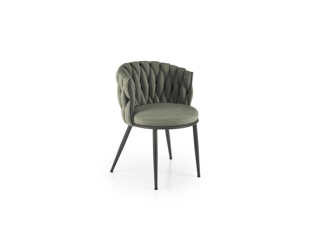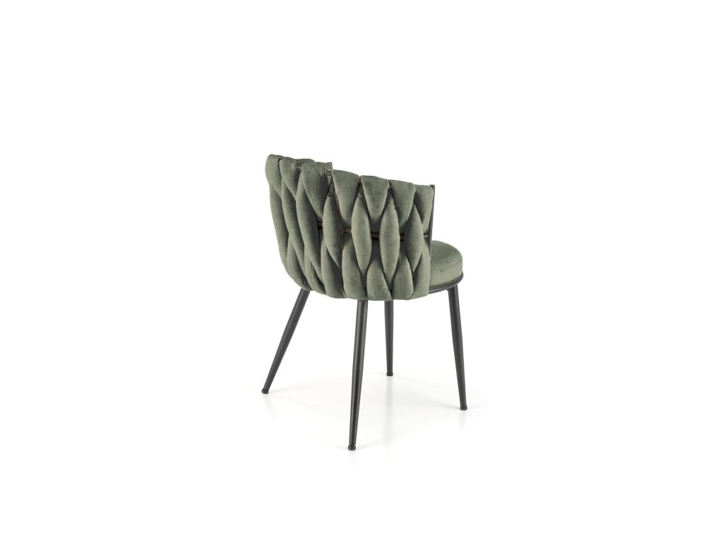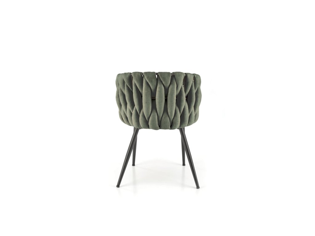 Židle VMK516 je elegantní a praktický kousek nábytku, který díky svému designu v olivové barvě vnese do vašeho interiéru klid, harmonii a sofistikovaný styl. Originální tkané opěradlo a měkké čalounění zaručují pohodlí, zatímco černě lakovaná kovová podnož dodává židli stabilitu a dlouhou životnost.