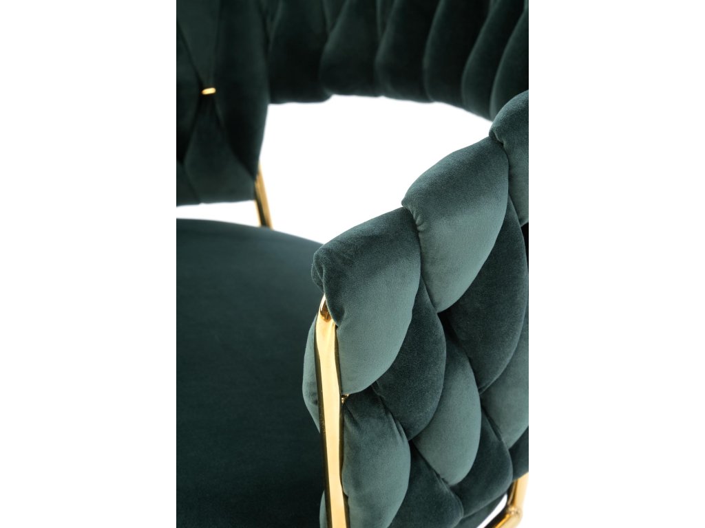 Jídelní křeslo VMK551 je vybaveno sametovou látkou v krásném tmavě zeleném odstínu, který přináší do vašeho domova příjemnou atmosféru. Tento elegantní materiál je jemný na dotek, ale zároveň odolný a snadno udržovatelný. Ocelová konstrukce židle poskytuje pevnost a stabilitu, což znamená, že křeslo je odolné a dlouhotrvající. Kombinace těchto kvalitních materiálů dává židli jedinečný vzhled a zaručuje její dlouhou životnost.