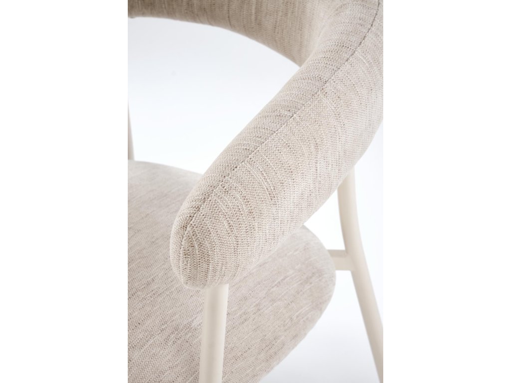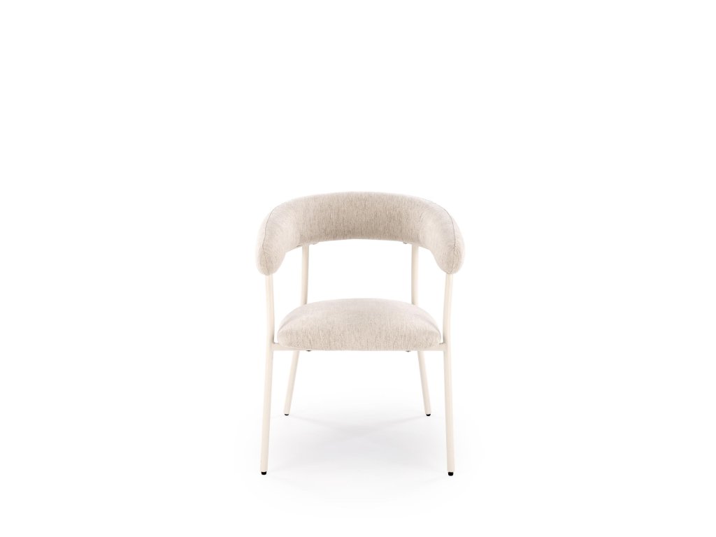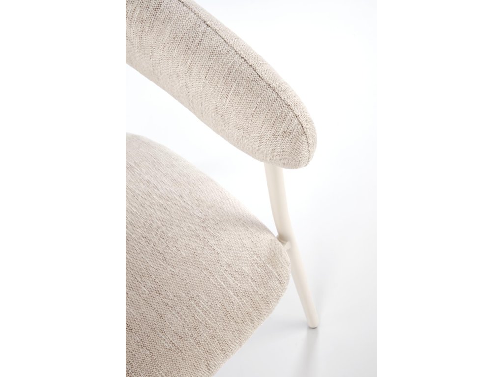 Židle VMK557 není pouze estetickým doplňkem, ale i zárukou dlouhé životnosti a stability. Její konstrukce je vyrobena z práškově lakované oceli v nadčasové bílé barvě, která zajišťuje pevnost a odolnost, zatímco sedák je potažen jemnou látkou Odin v elegantním světle béžovém odstínu, který vyniká svojí příjemnou texturou a snadnou údržbou.