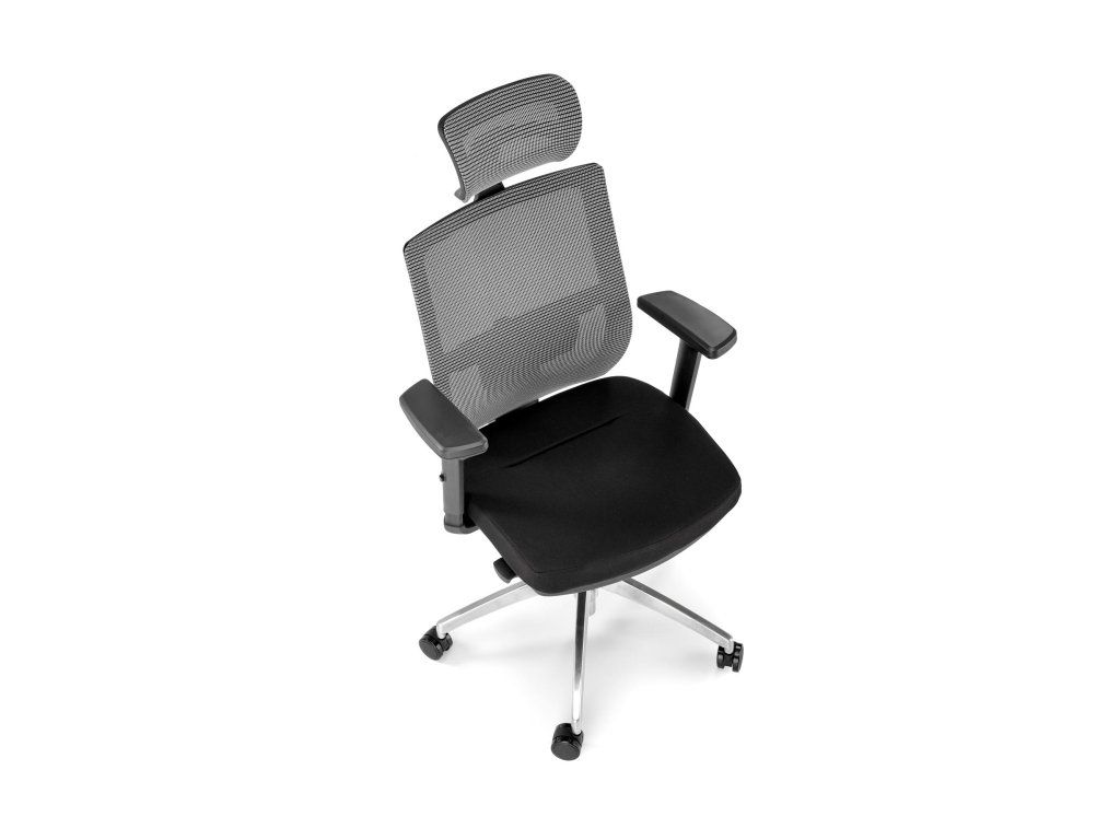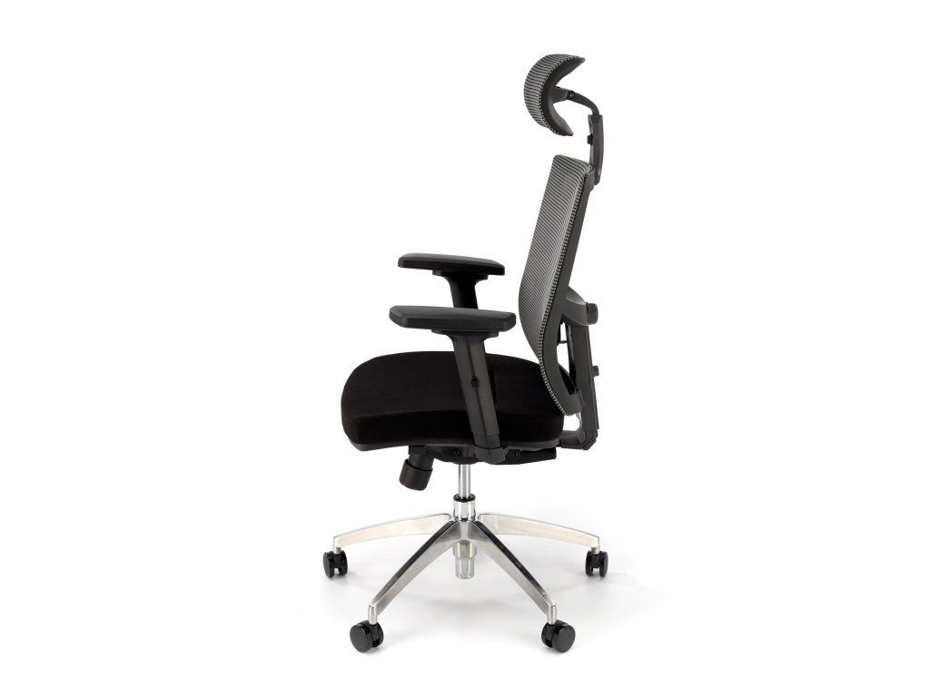 Sedák je vyplněný kvalitní pěnou a potažený odolnou látkou, která odolá mechanickému poškození. Prodyšné opěradlo ze síťoviny zabraňuje přehřívání zad a zajišťuje příjemné sezení i při delší práci. Robustní hliníková základna garantuje dlouhou životnost a stabilitu.