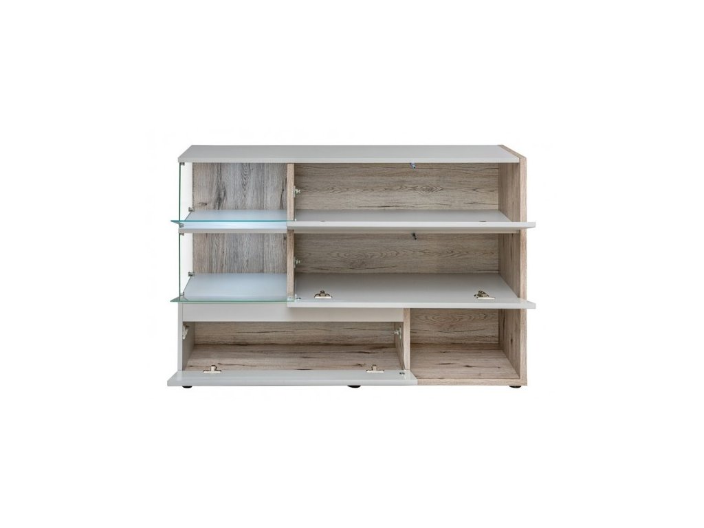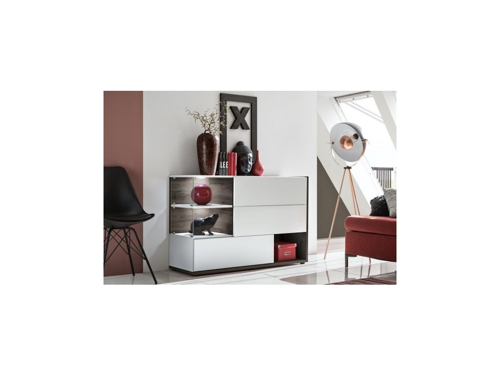 Moderní komoda je navržena podle nejnovějších trendů. Dvířka i korpus jsou vyrobeny z LTD desky v kombinaci s MDF v barvě bílá mat / perla elm. LED osvětlení je v ceně. Dodáváme v demontovaném stavu.