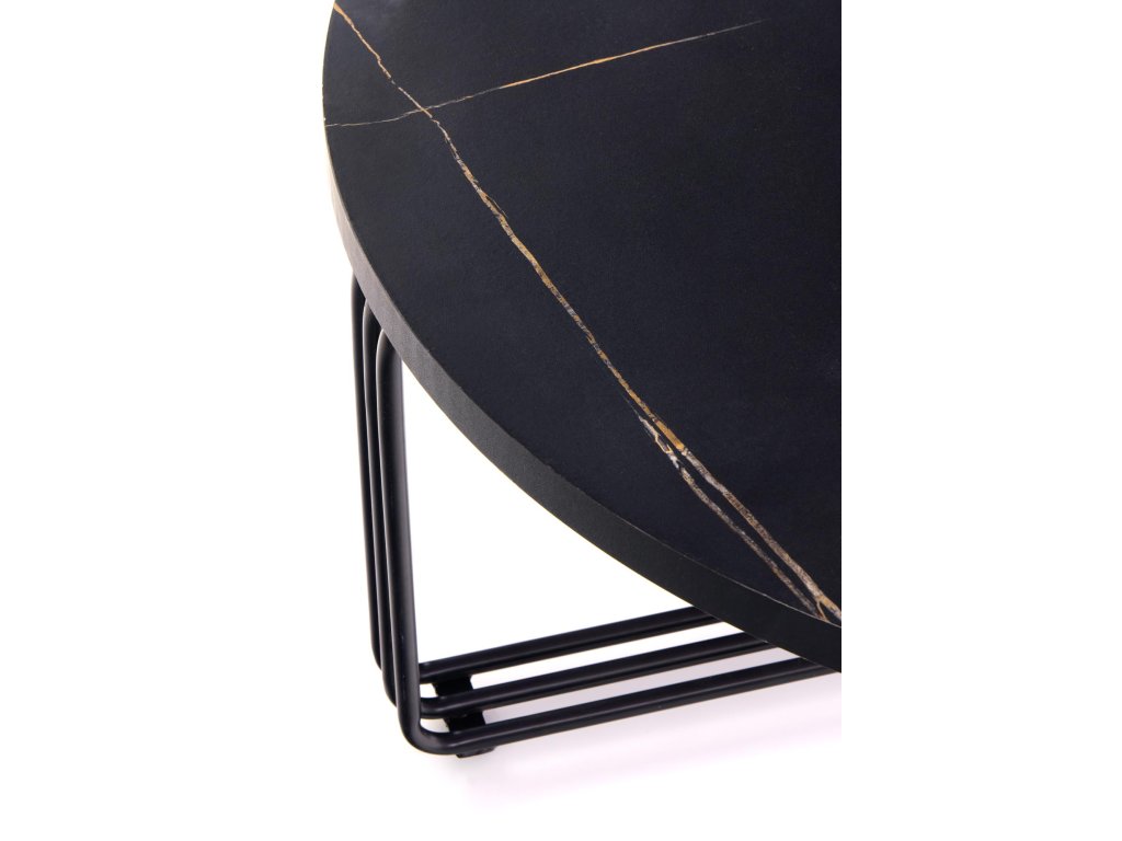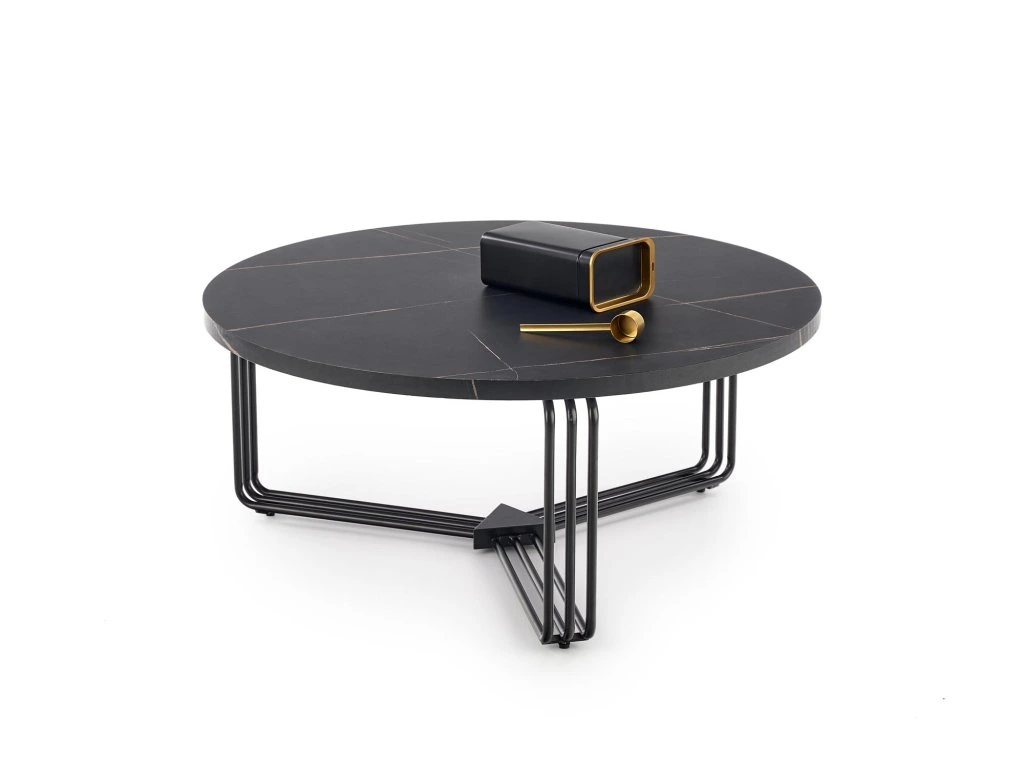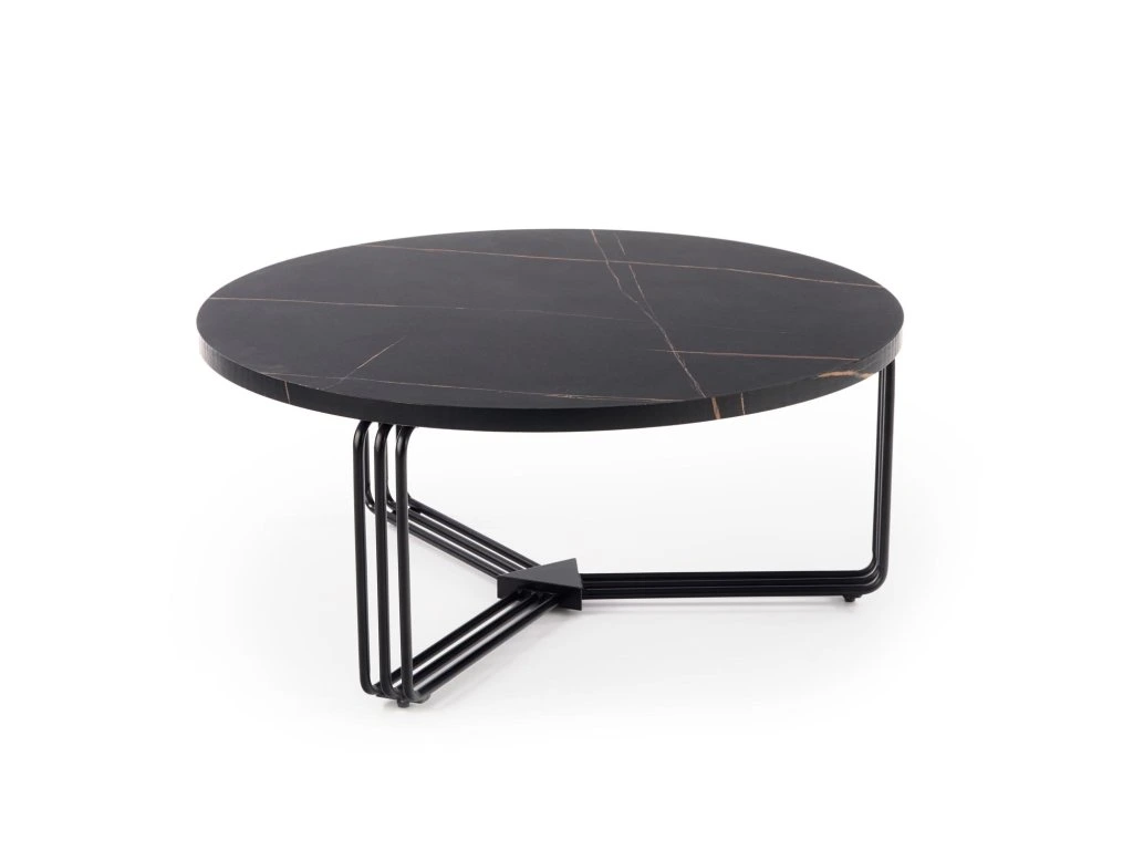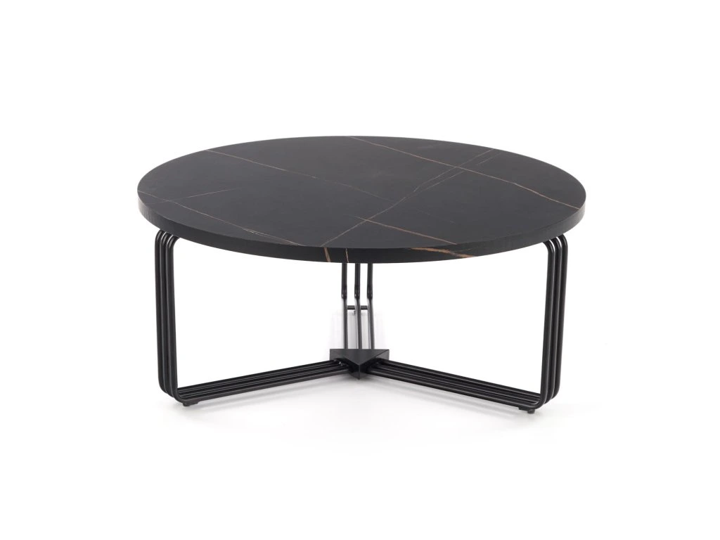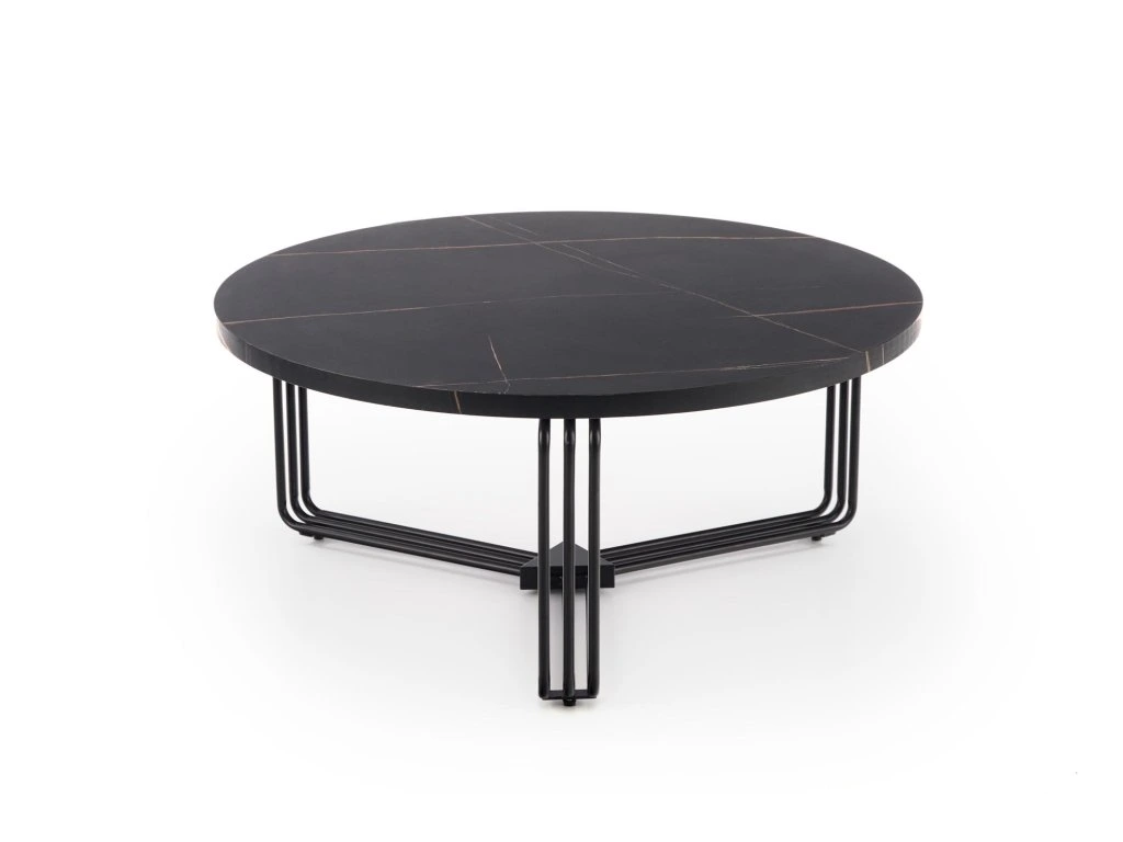 Konferenční stolek MARCUS 80x80 cm je ideální volbou pro ty, kteří hledají elegantní a funkční doplněk do svého obývacího pokoje. S jeho kulatou deskou s imitací černého mramoru a kovovou podnoží v černé barvě tento stolek přináší moderní a sofistikovaný vzhled, který se hodí do různých interiérových stylů, od industriálních až po elegantní.
