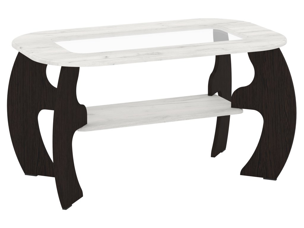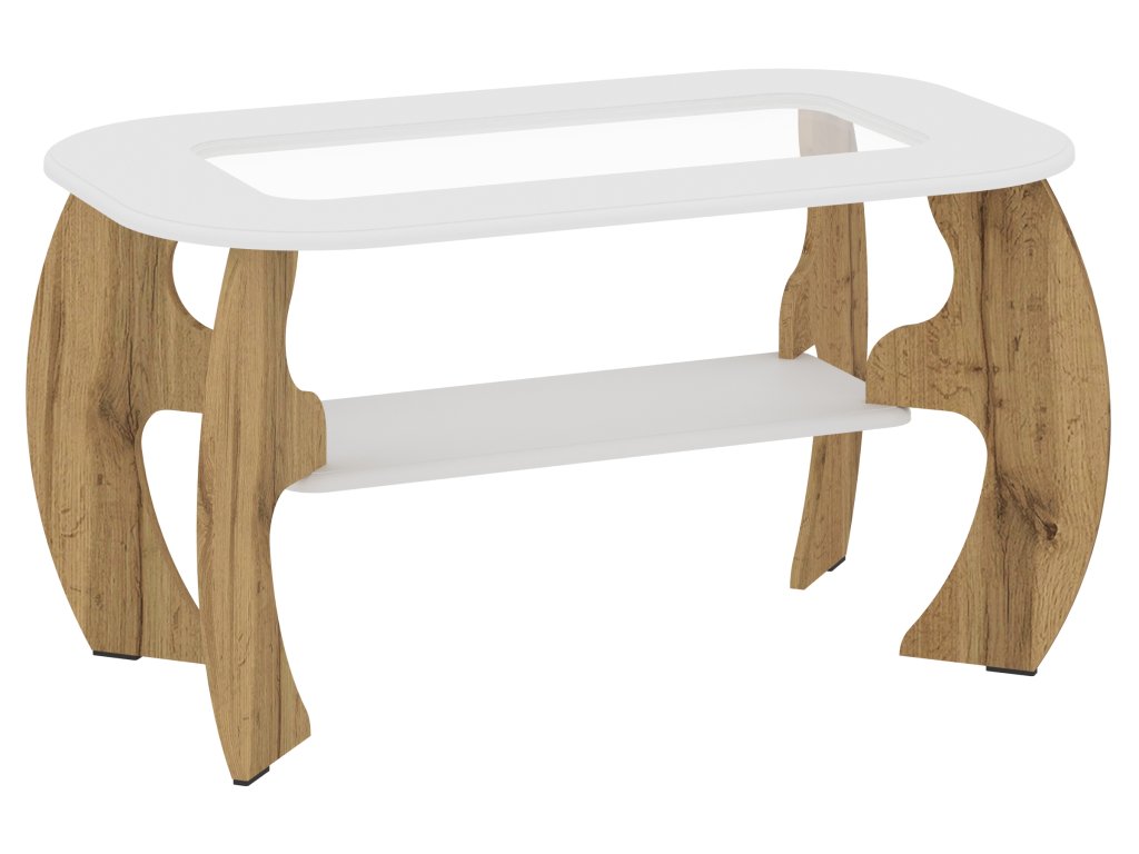 Konferenční stolek SAKURA MDF oválný s policí a sklem – elegantní design pro váš interiér