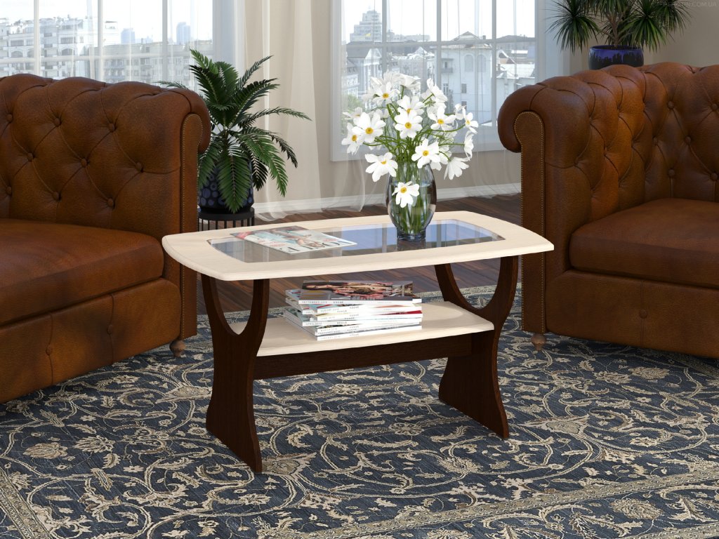Konferenční stolek SHARM MDF obdélníkový s policí a sklem – Moderní design pro váš interiér