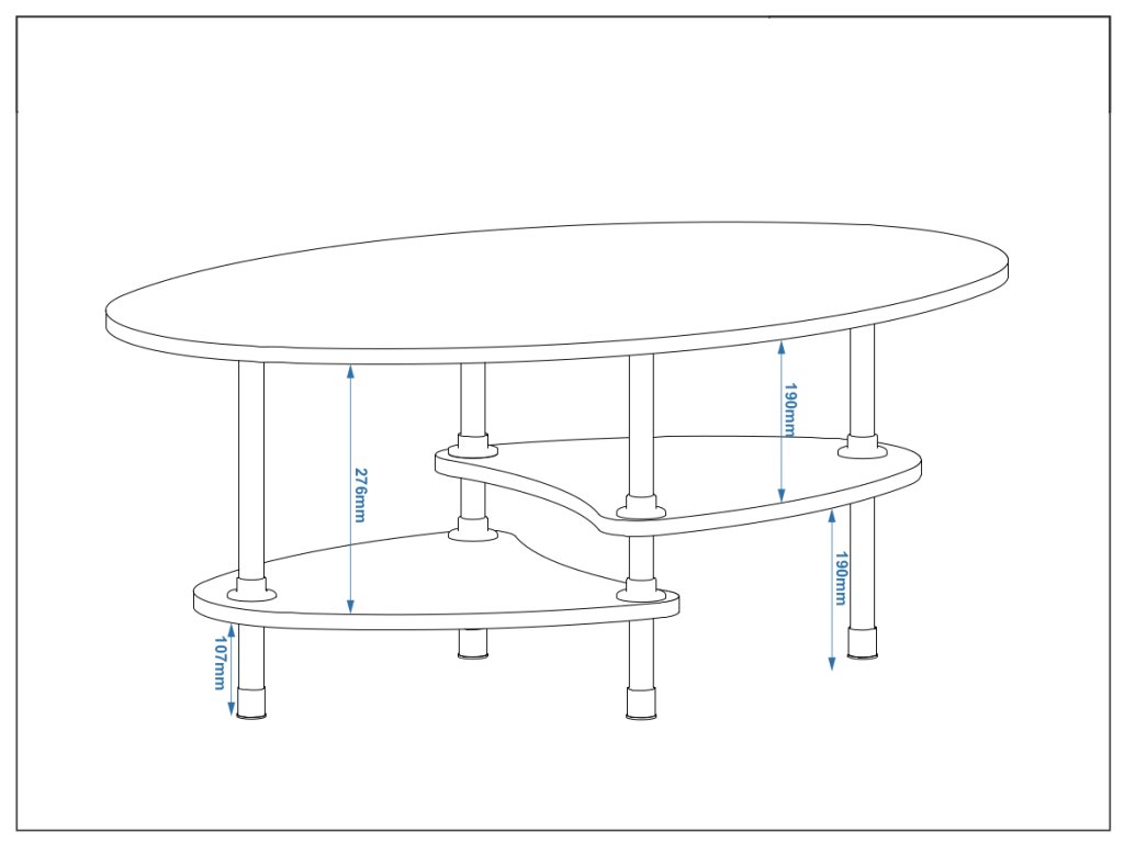 Konferenční stolek VEGA - Oválný s policemi a moderními designovými prvky